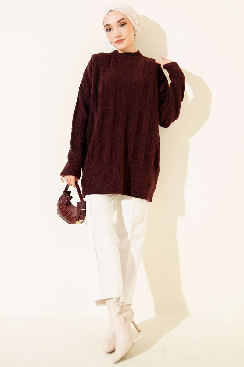 Şerit Örgülü Yumoş Triko Tunik Kırmızı
