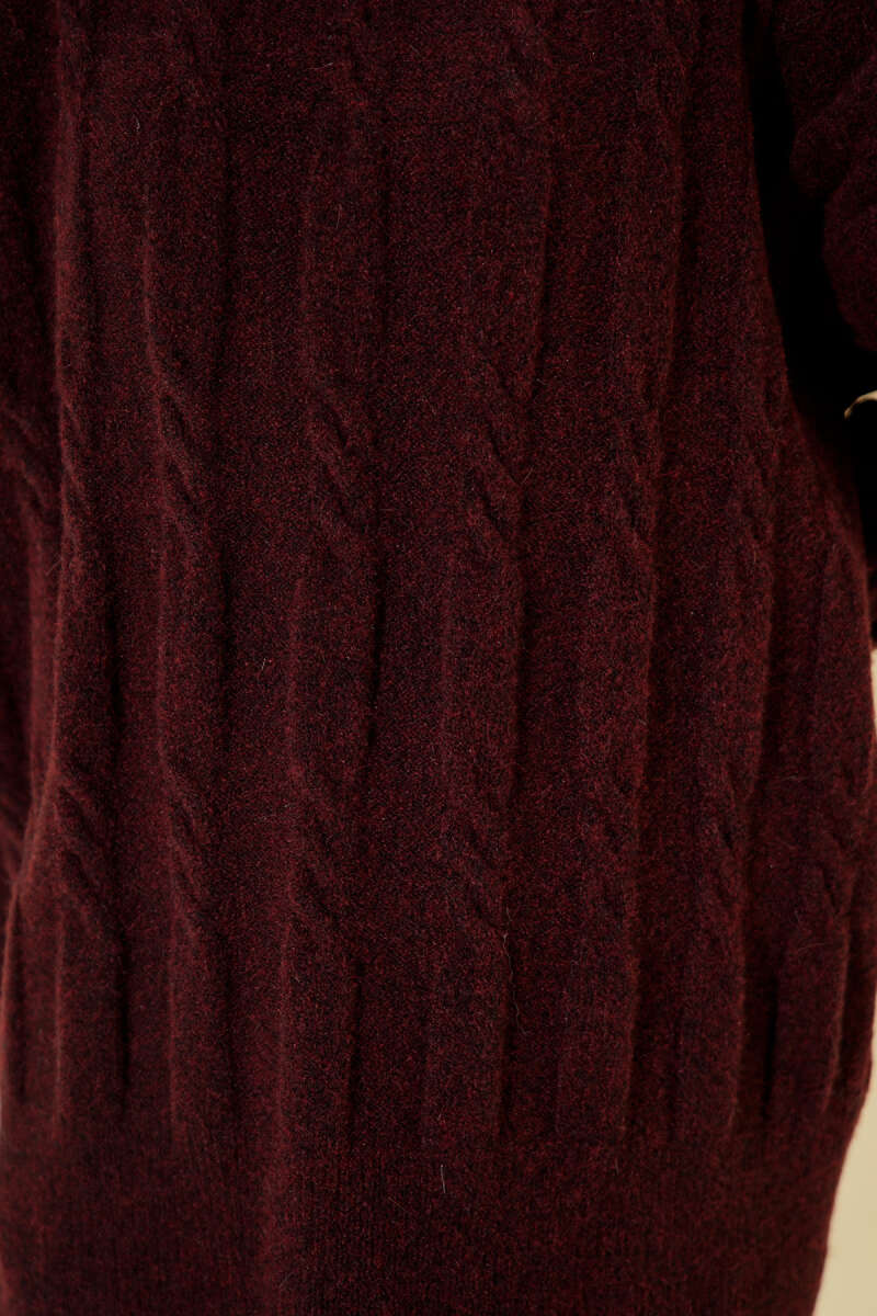 Gömlek Yaka Çizgili Triko Tunik Bordo