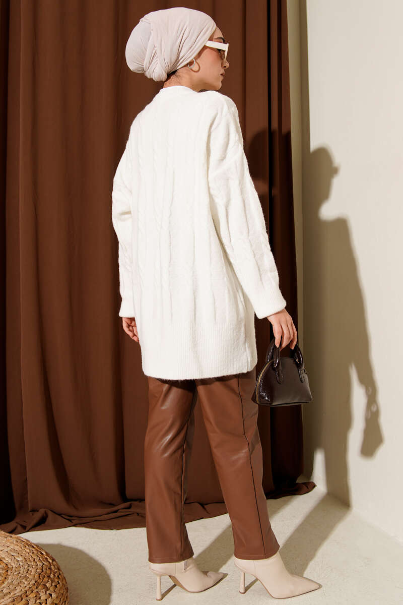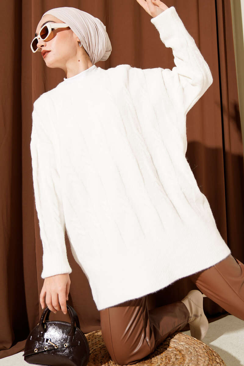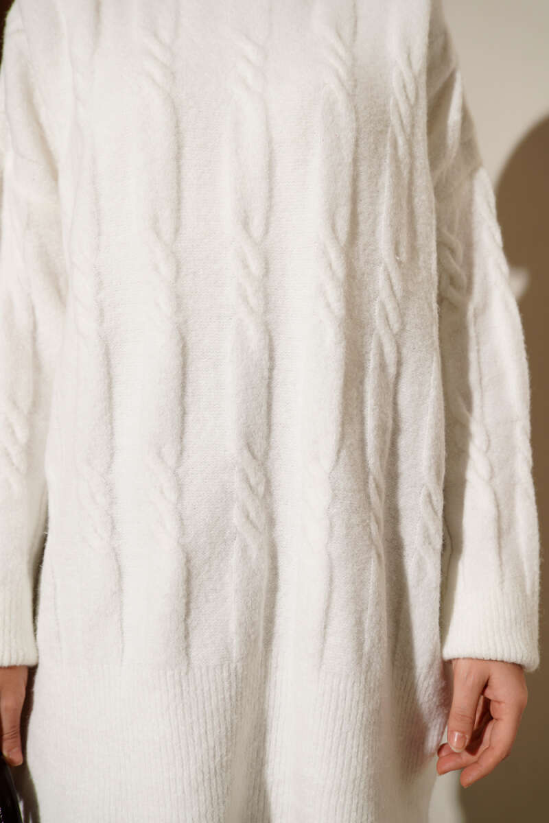 Şerit Örgülü Yumoş Triko Tunik Bej