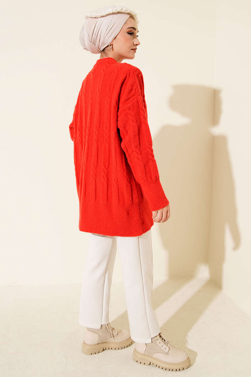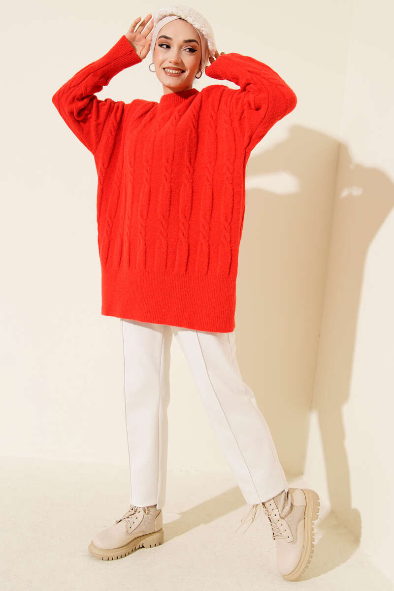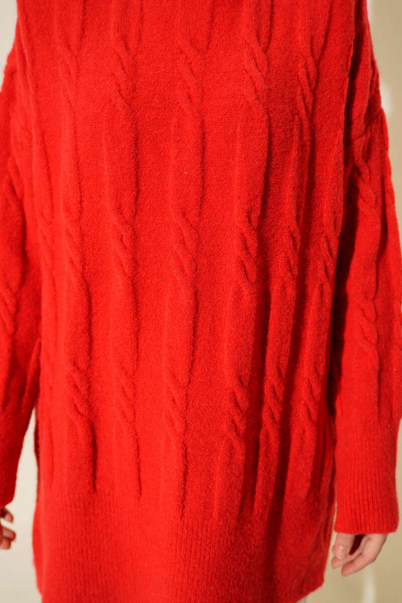 Şerit Örgülü Yumoş Triko Tunik Bordo