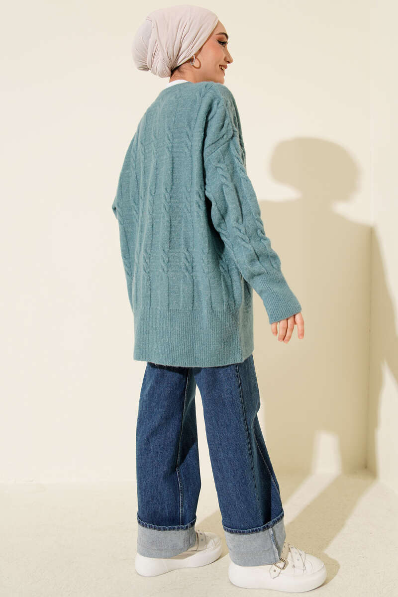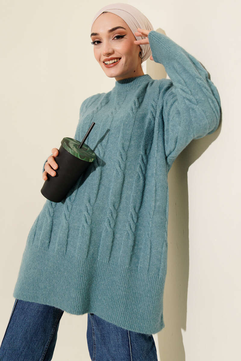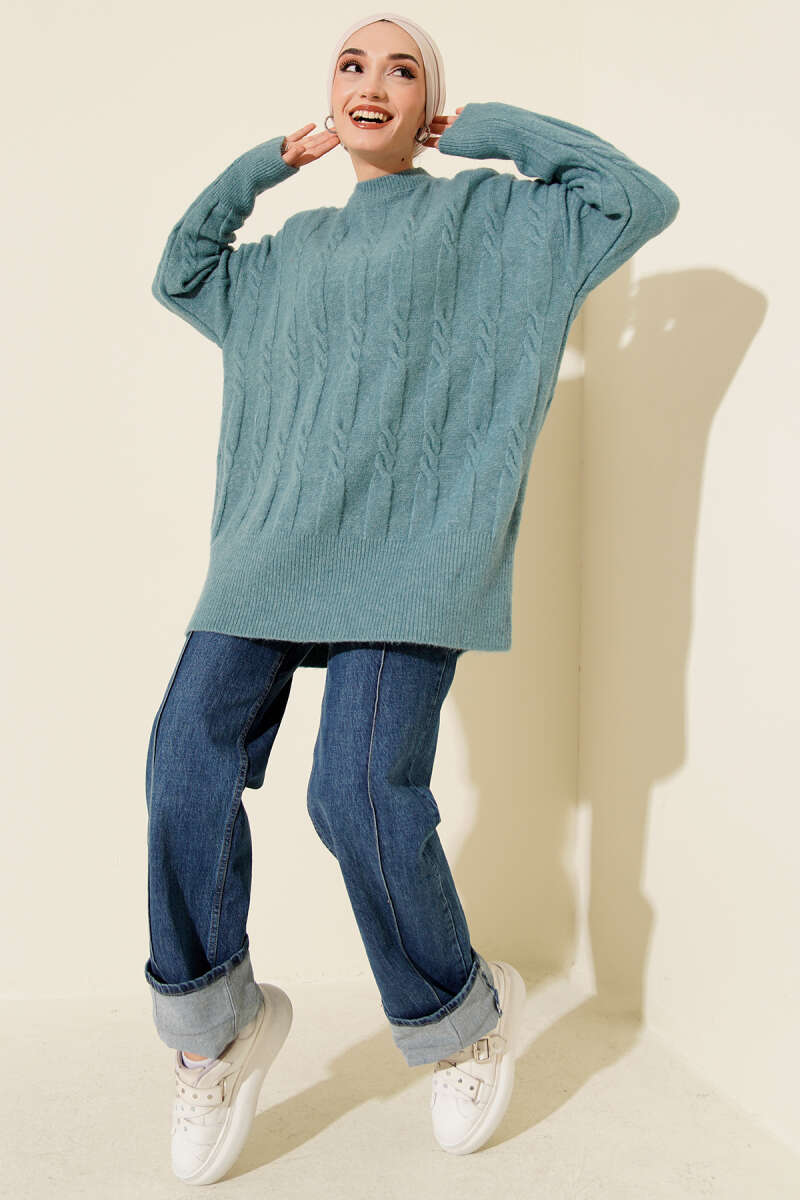 Saten Yaka Fularlı Triko Tunik Yeşil