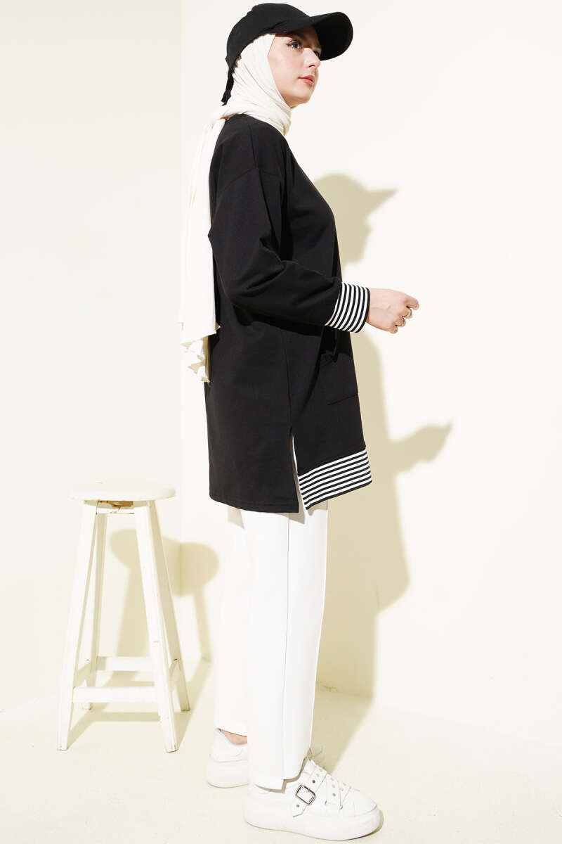 Kolları Şifon Düğme Detaylı Bluz Siyah