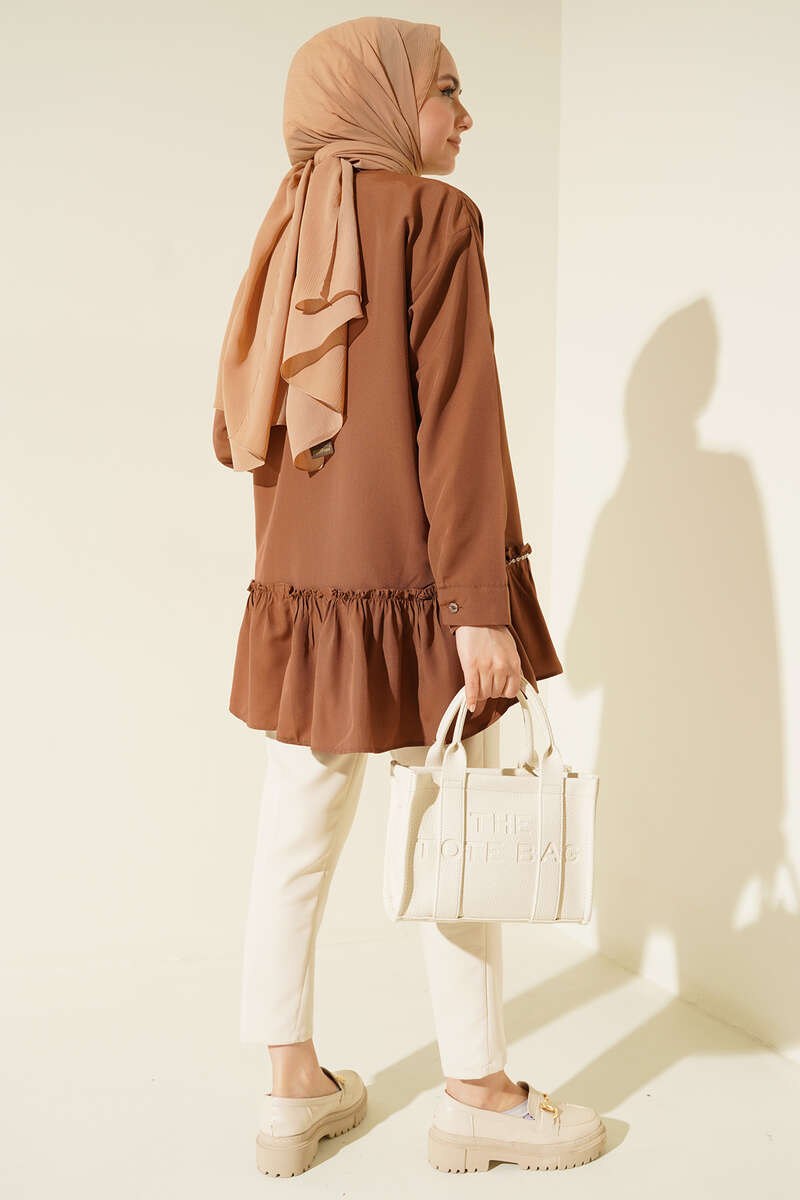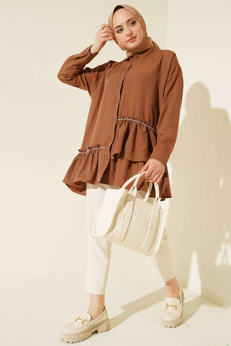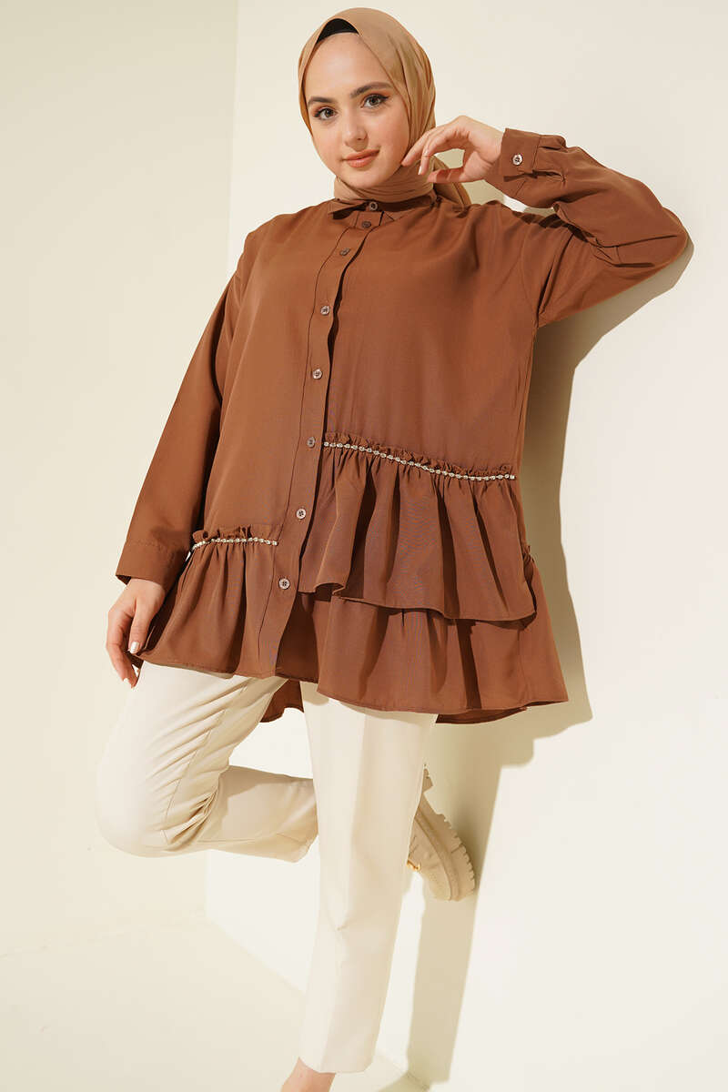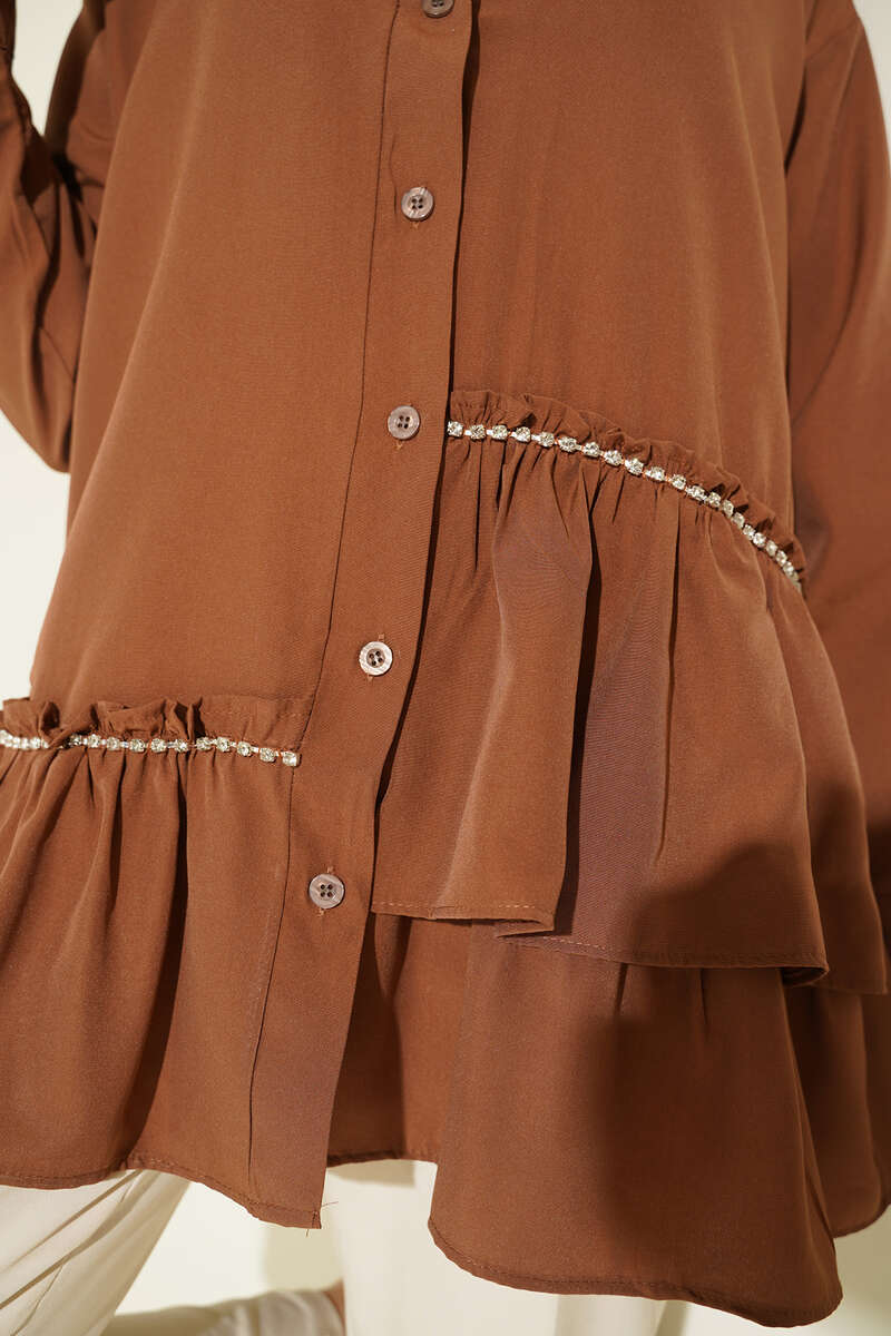 Şerit Taş Detaylı Gömlek Kahve