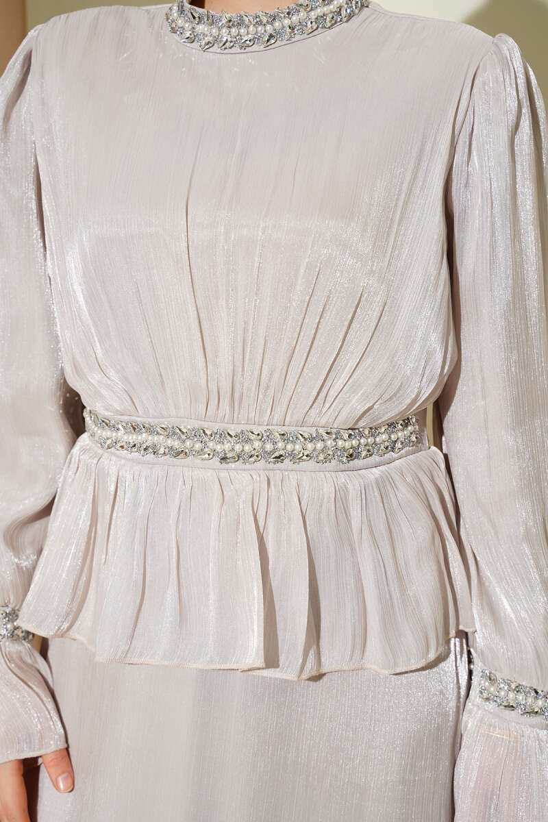 Şerit Taş Süslemeli Abiye Elbise Taş