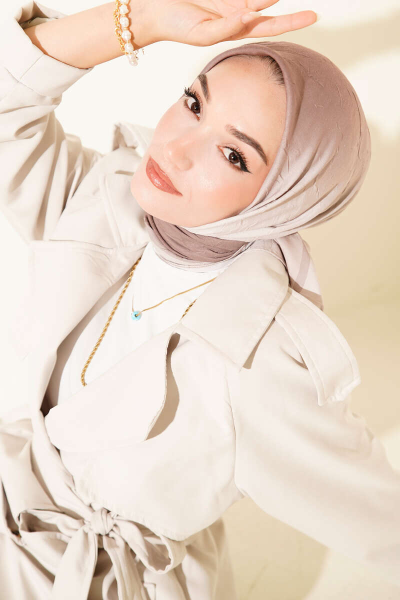 Mini Boncuk Detaylı Eşarp Kayrak Grisi