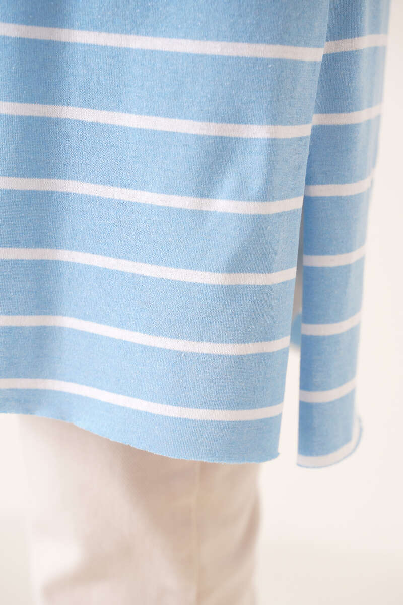 Yeni sezon model tunik yatay şeritleriyle sportif kombinlerinizin tamamlayıcı parçası olacaktır. Bisiklet yaka olan tuniğimiz düşük omuz modeldir. Yanlarında yırtmaçları bulunan tuniğimiz çeşitli renkleriyle kombinlerinize renk katacaktır.