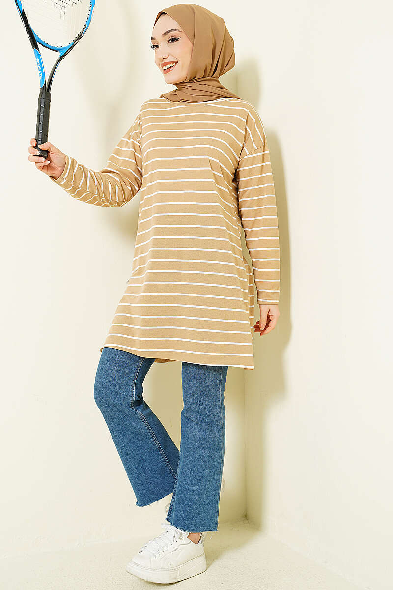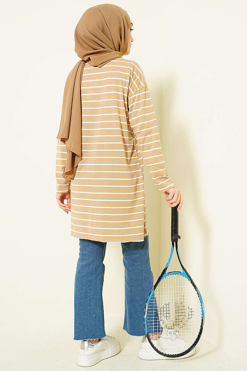 Asimetrik Kesim Saten Tunik Acı Kahve