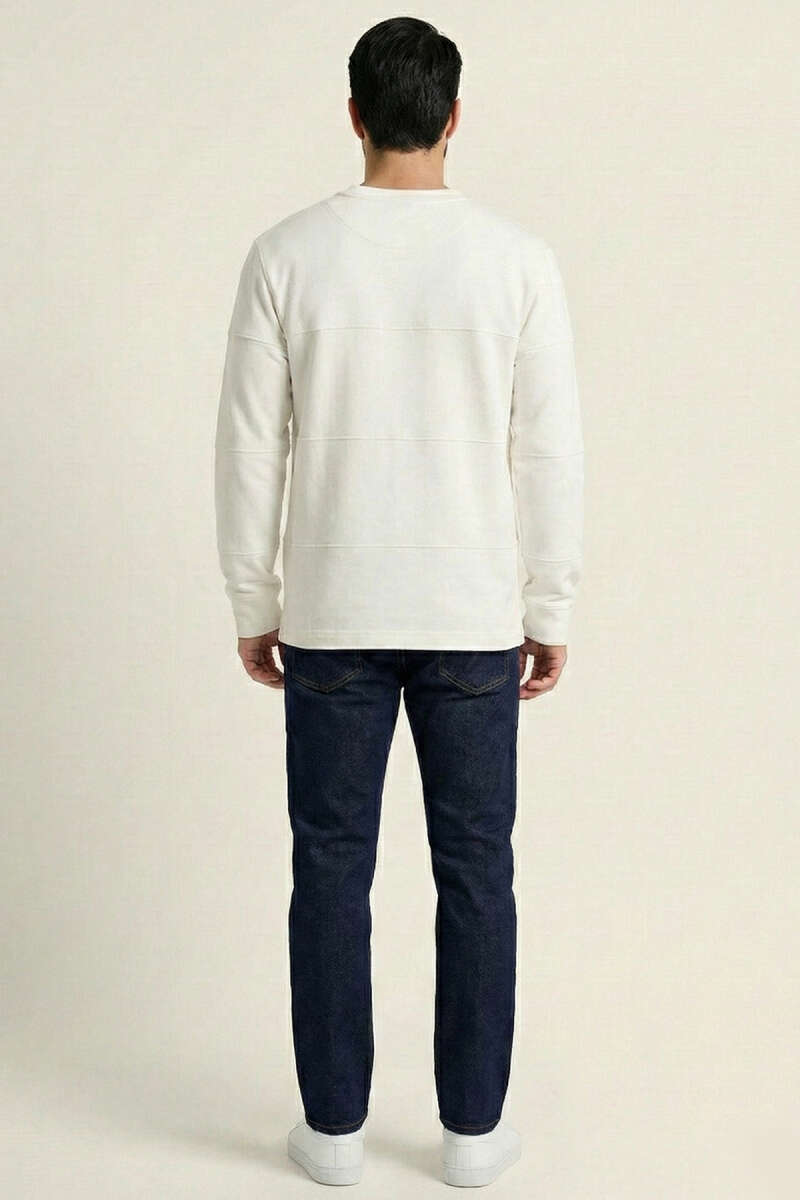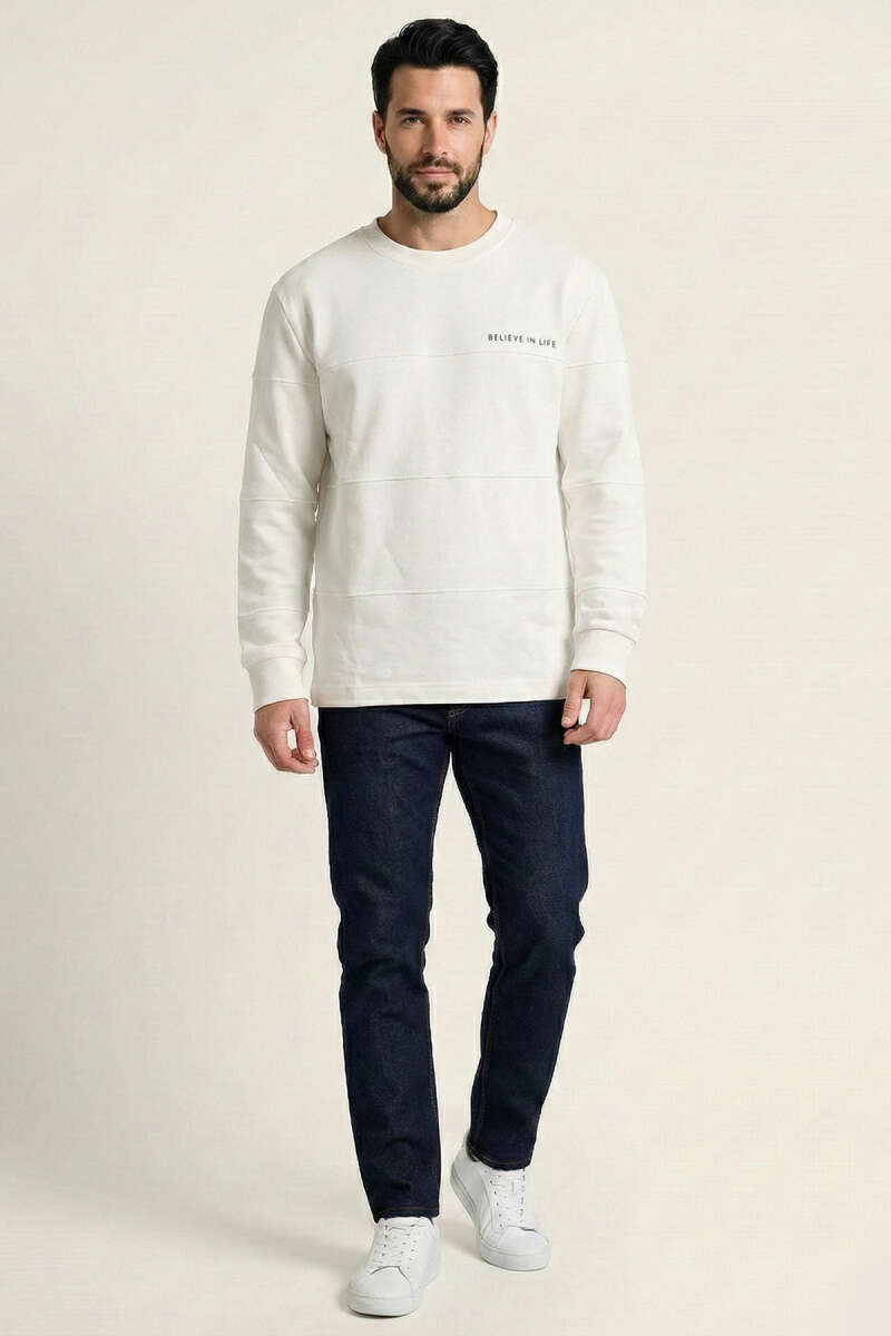 Bisiklet Yaka Kol Ribanalı Erkek Sweatshirt Beyaz