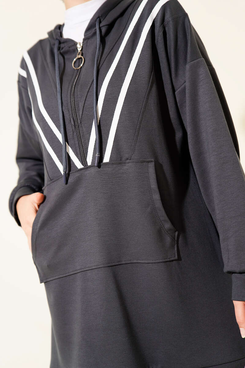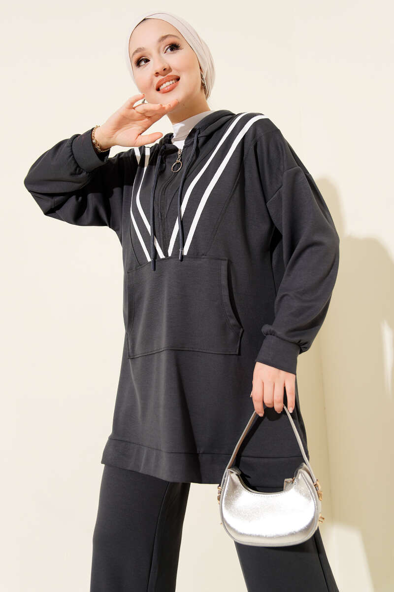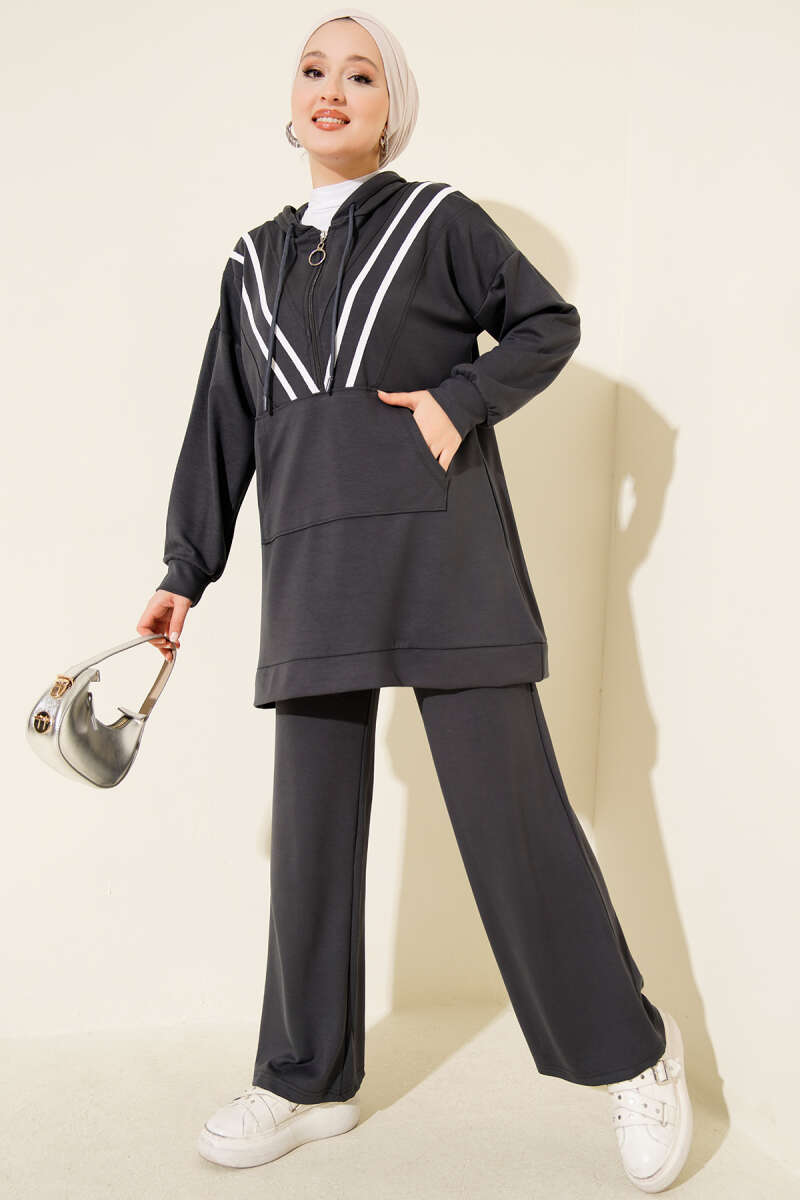 Şeritli Yarım Fermuarlı Loyşa İkili Takım Kahve
