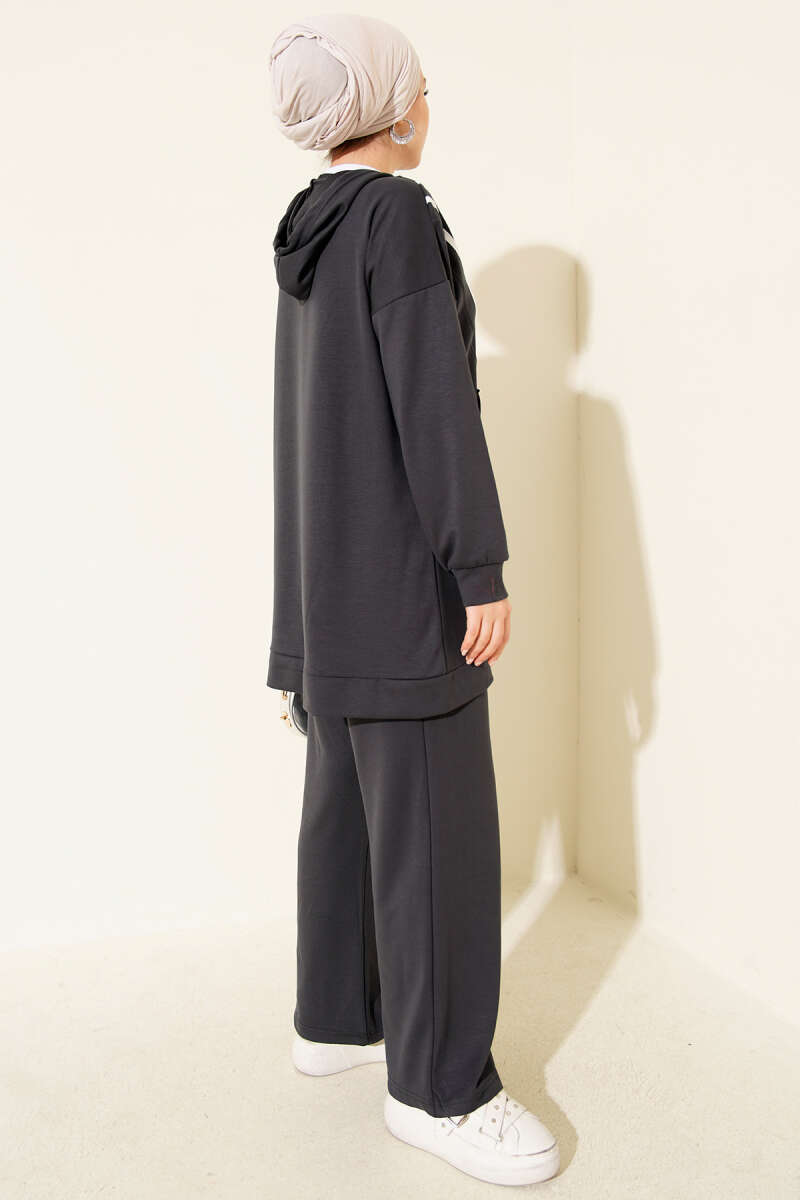 Yan Bağlamalı Kadife Fitilli İkili Takım Füme