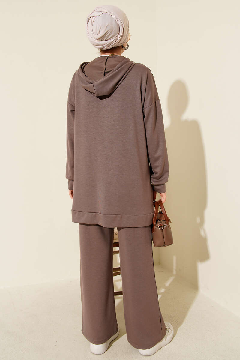 Yan Bağlamalı Kadife Fitilli İkili Takım Kahve