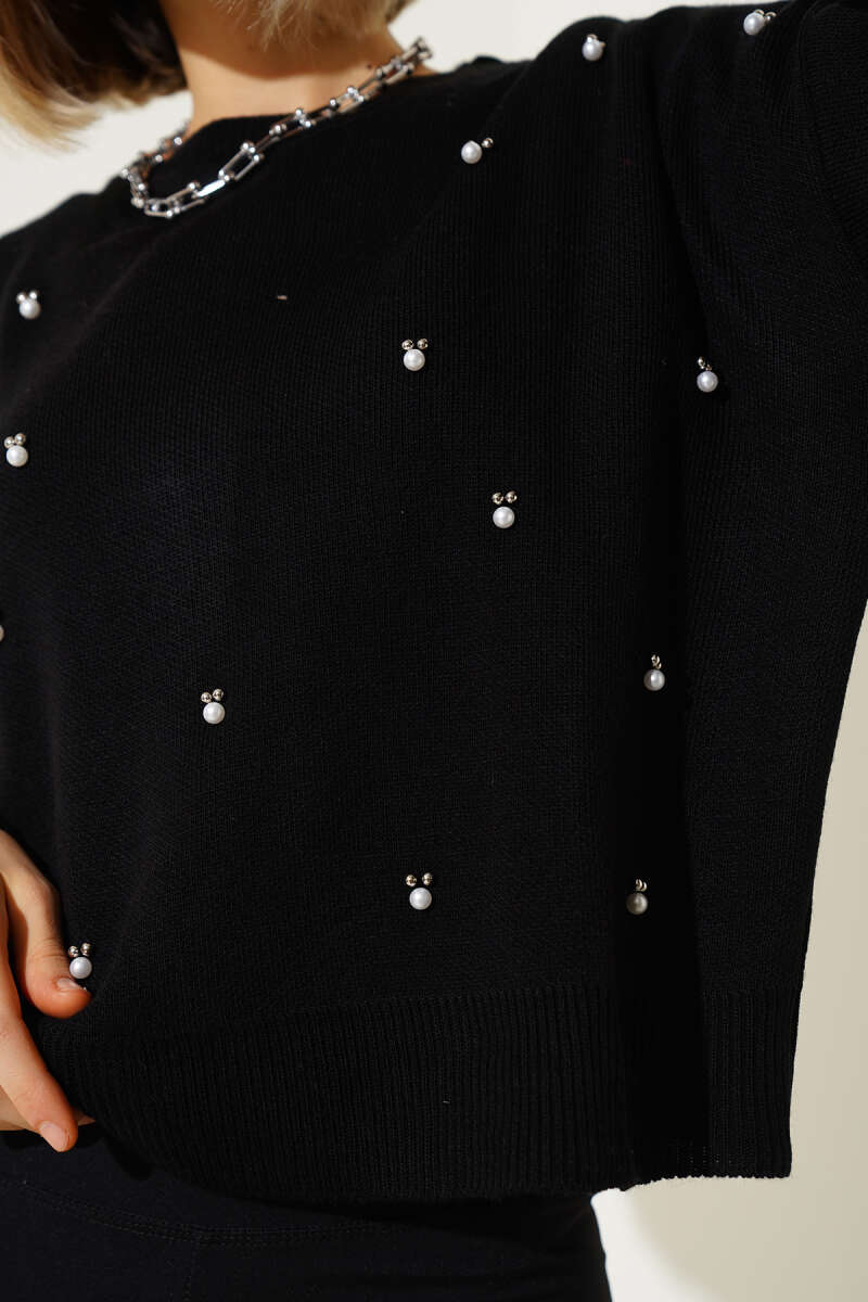 Degaje Yaka Taşlı Vatkalı Elbise Siyah
