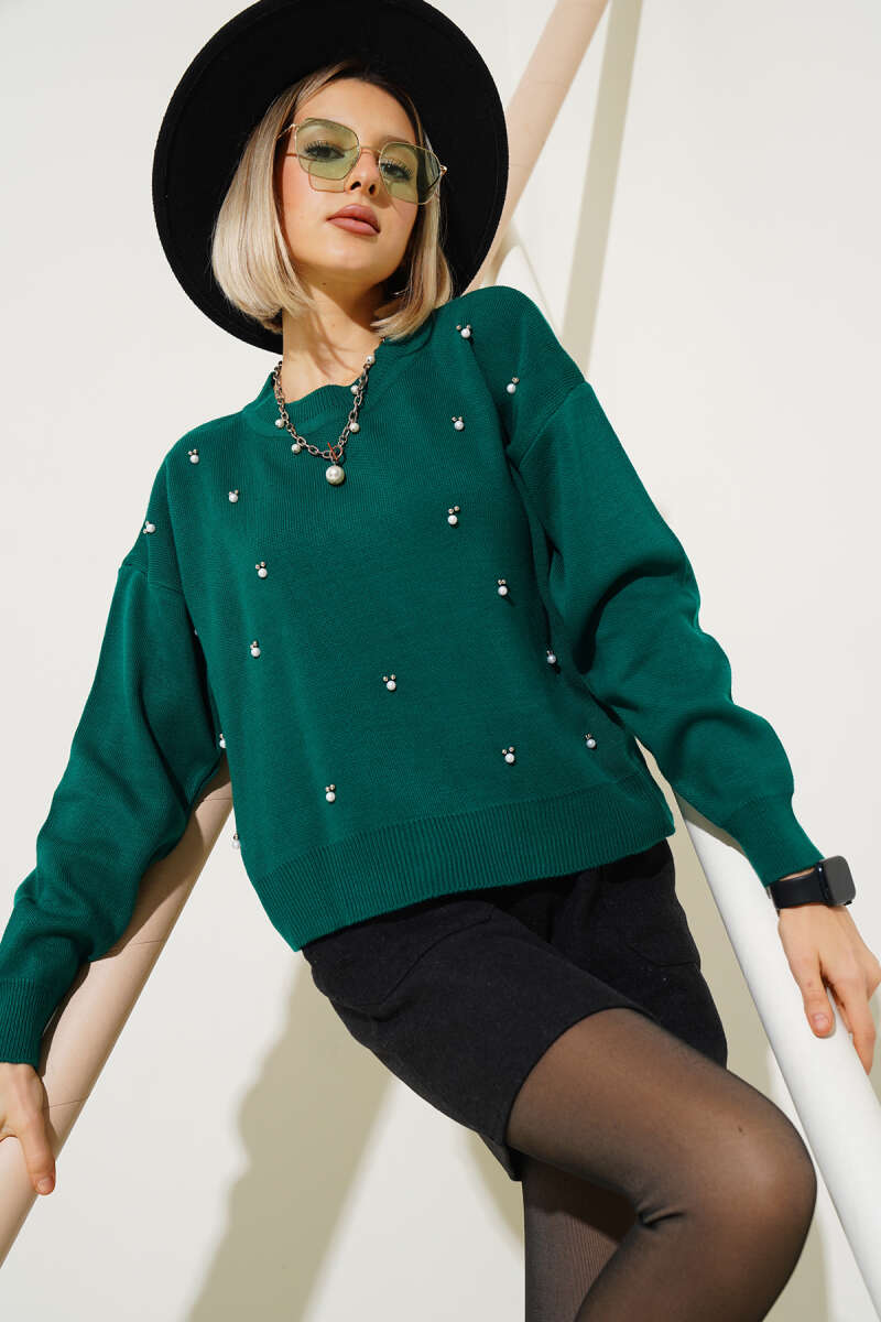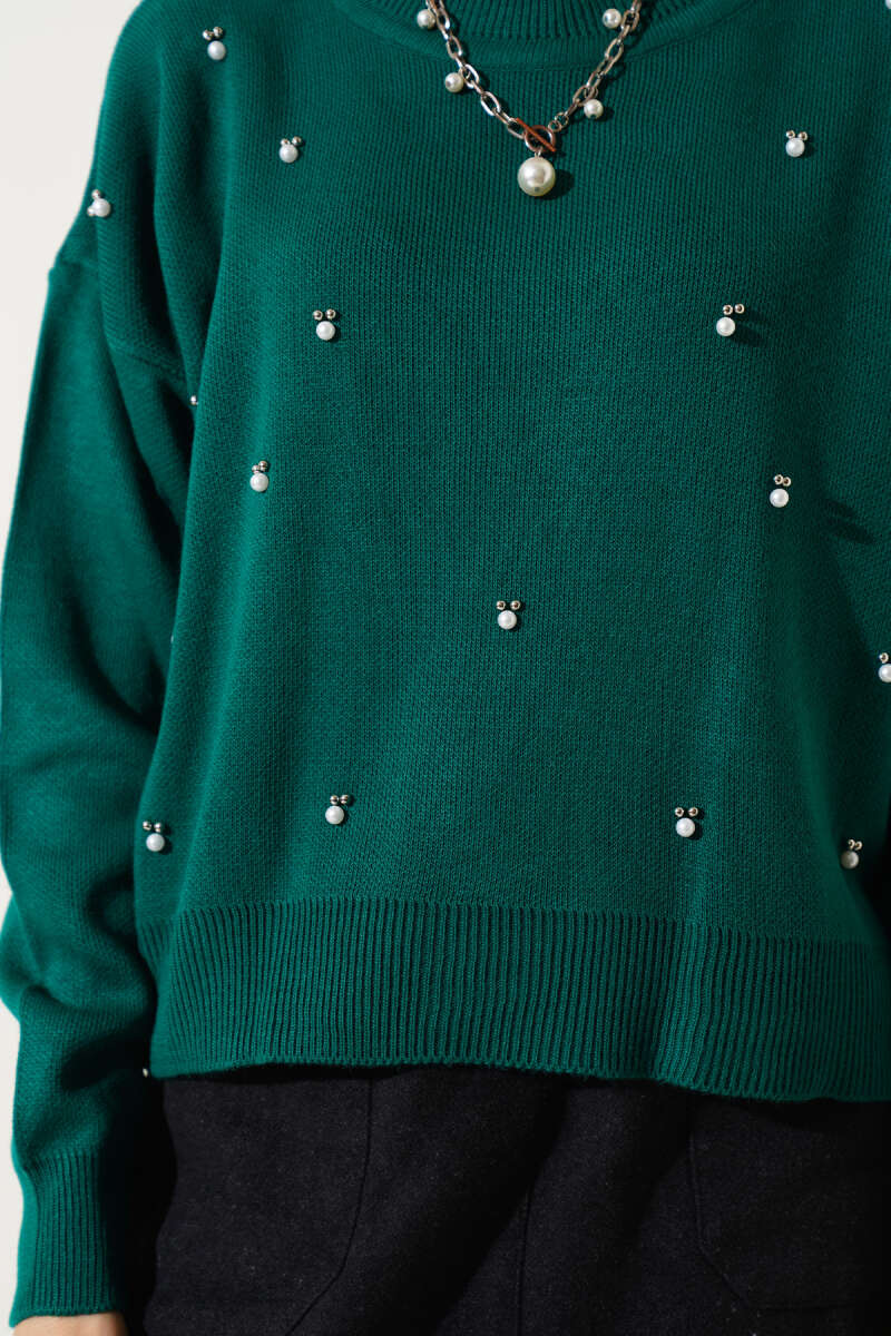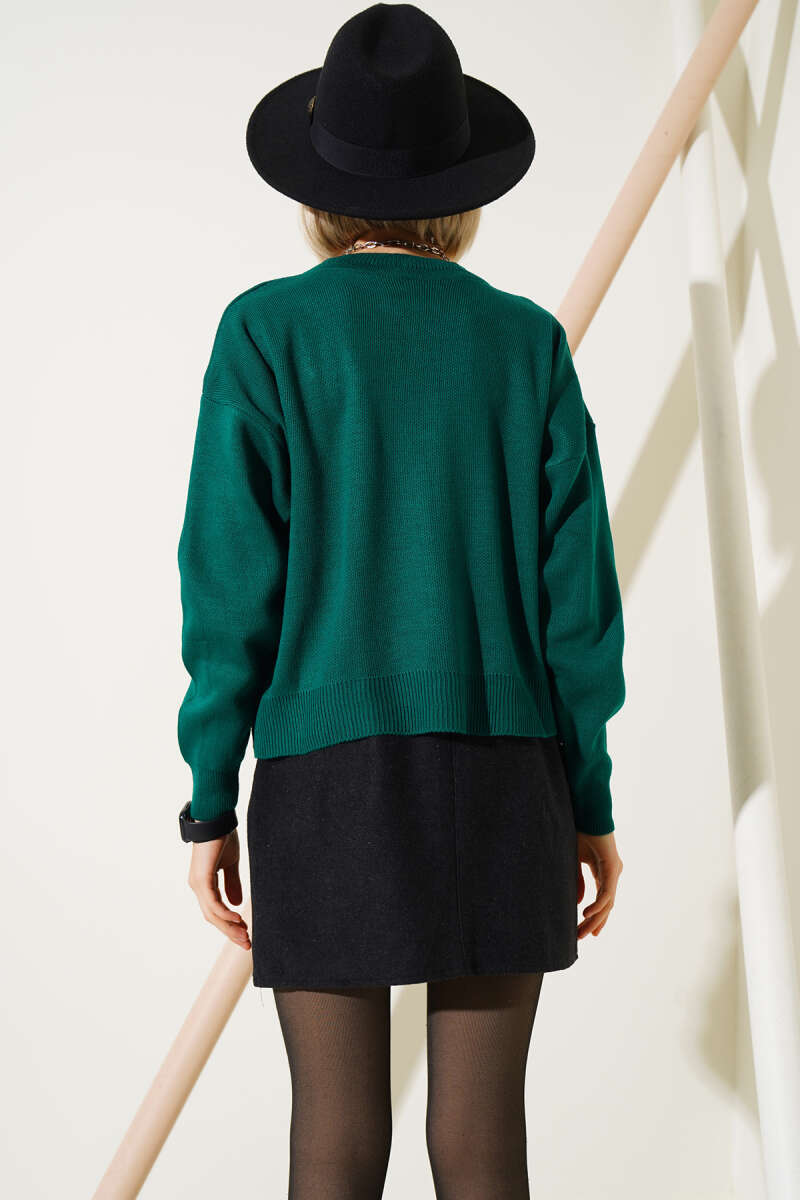 Bisiklet Yaka Sakal Detaylı Kazak Beyaz