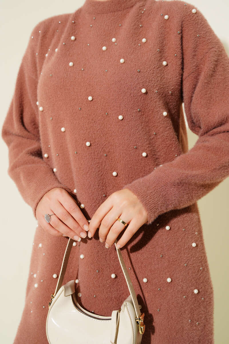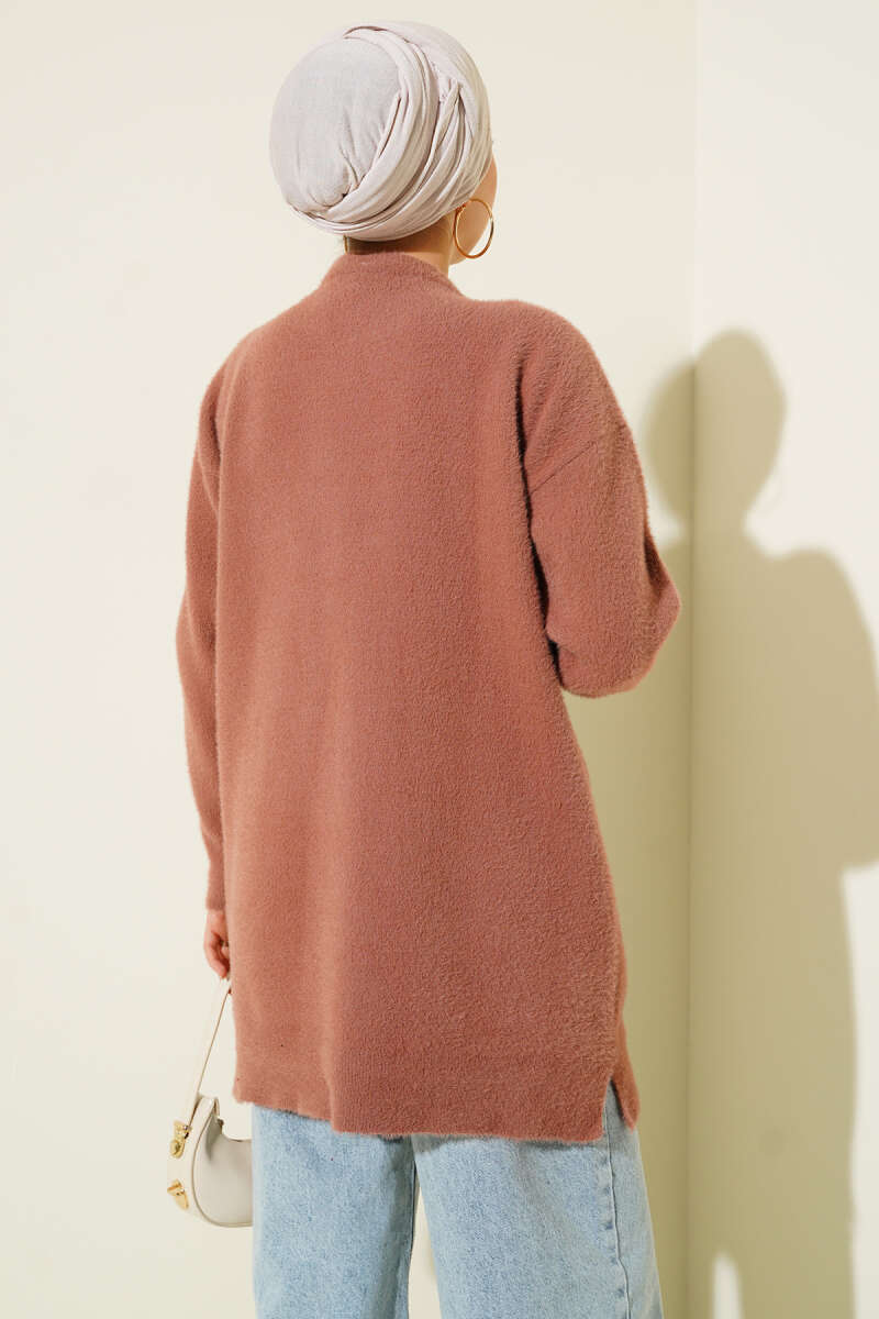 Çift Cepli Sakallı Hırka Gül Kurusu