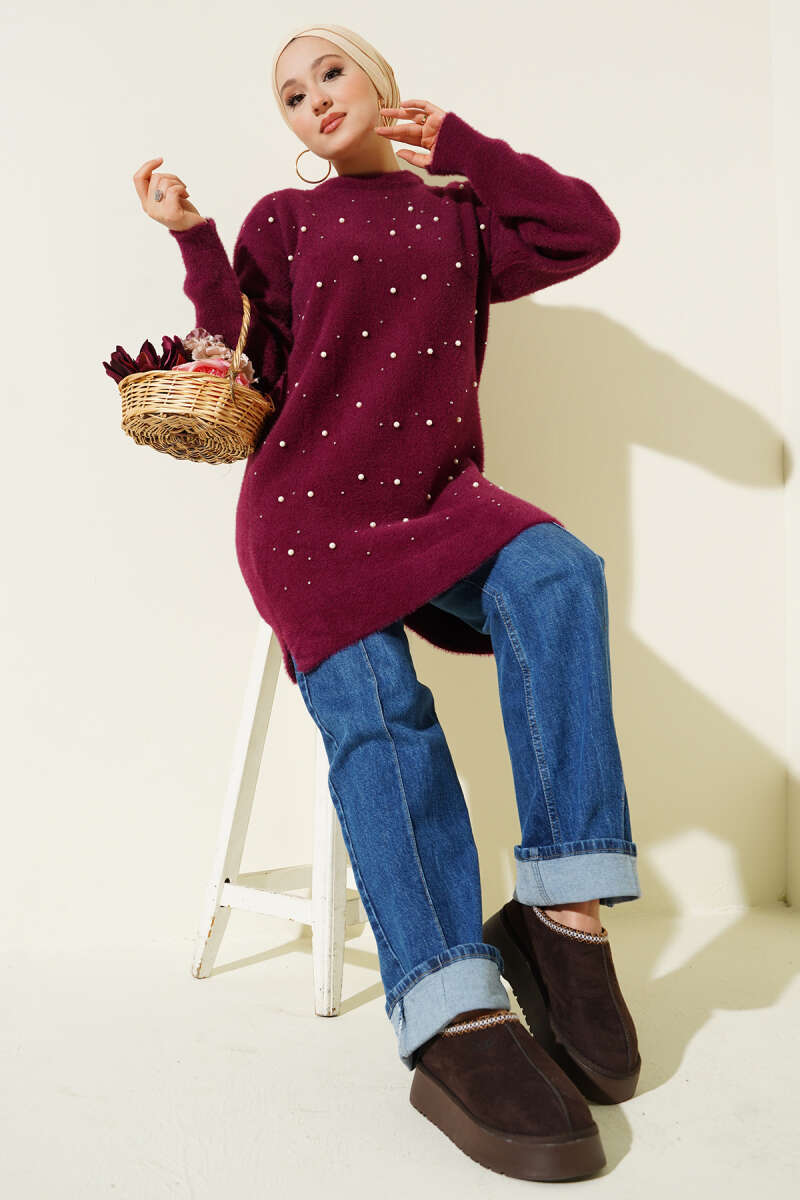 Serpme İncili Sakallı Tunik Gül Kurusu