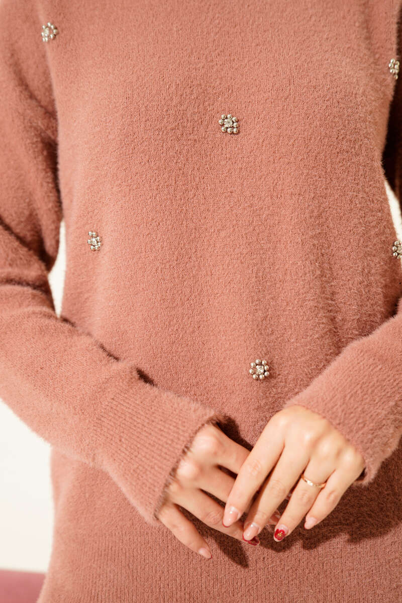 Serpme İncili Sakallı Tunik Gül Kurusu