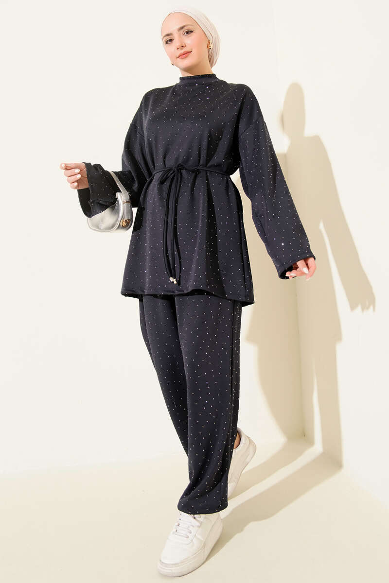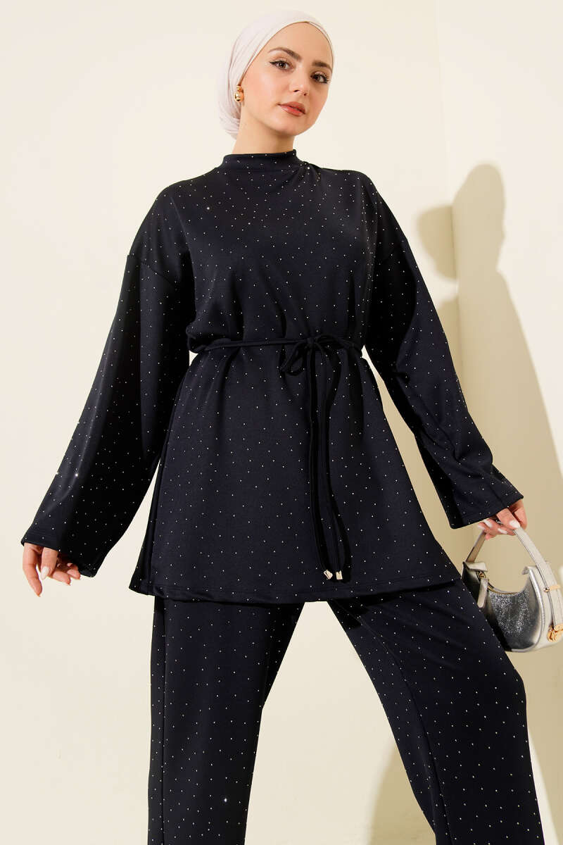 Serpme Taşlı İp Bağcıklı İkili Takım Siyah