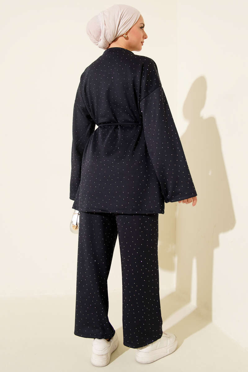 Metal Düğmeli Kuşaklı İkili Takım Lacivert