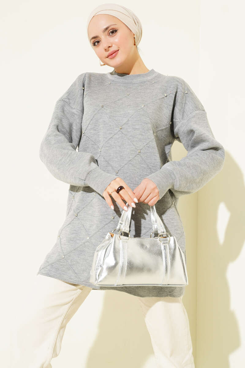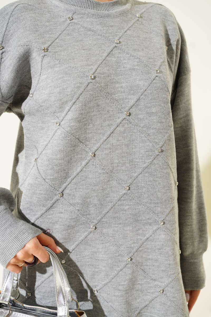 Taşlı Brit Düğmeli Terikoton Gömlek Bej