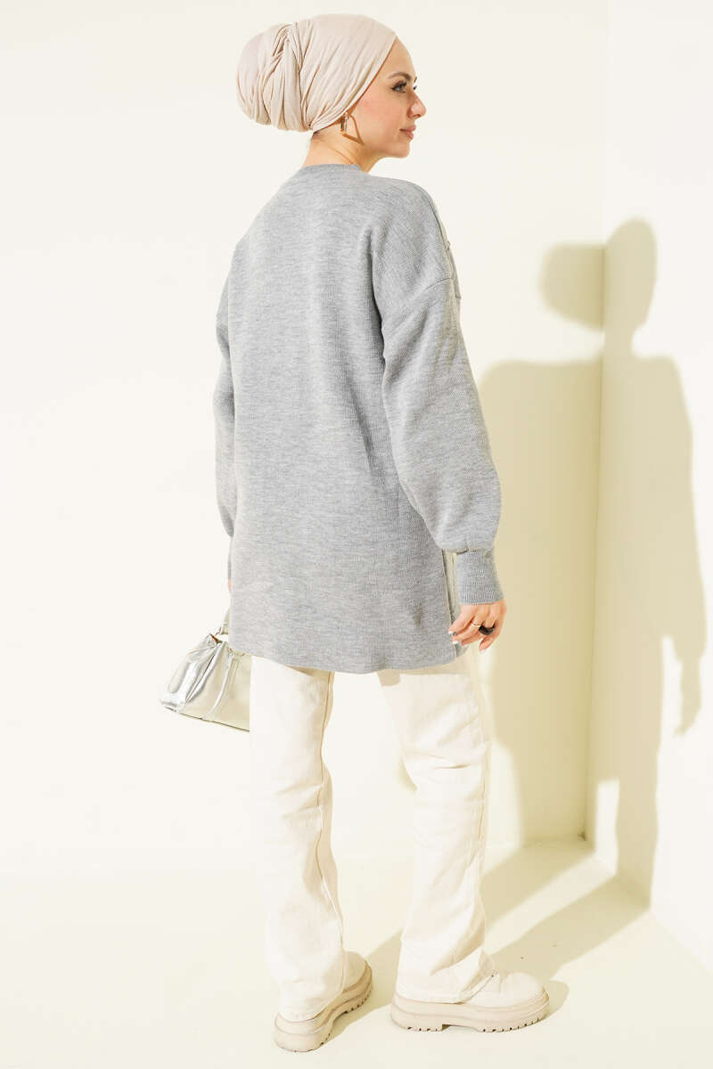 Dik Yaka Fermuarlı Triko Hırka Kahve