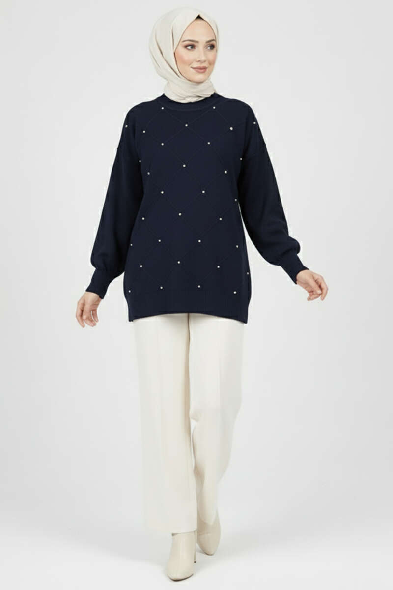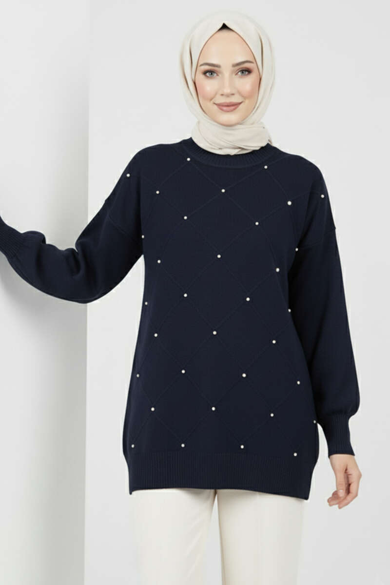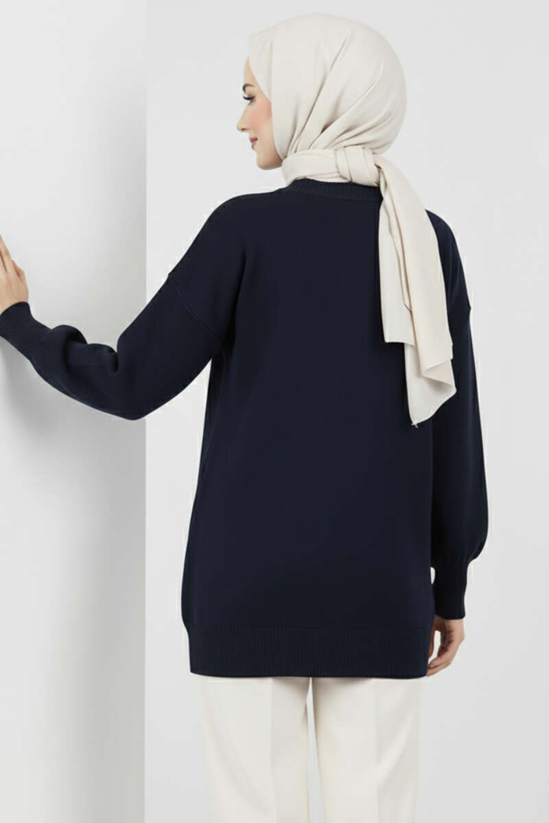 Balıkçı Yaka Parmak Geçirmeli Triko Kazak Lacivert
