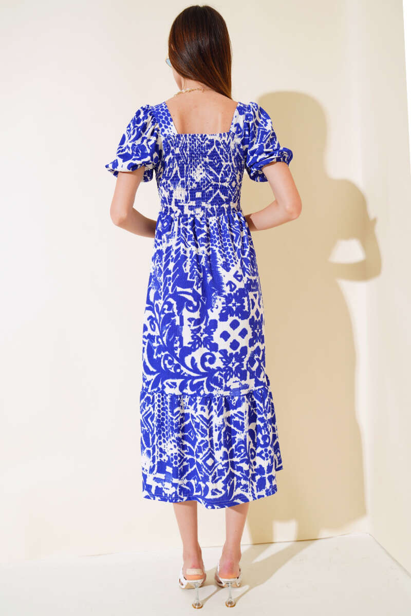 Seul Desenli Gipeli Elbise Saks