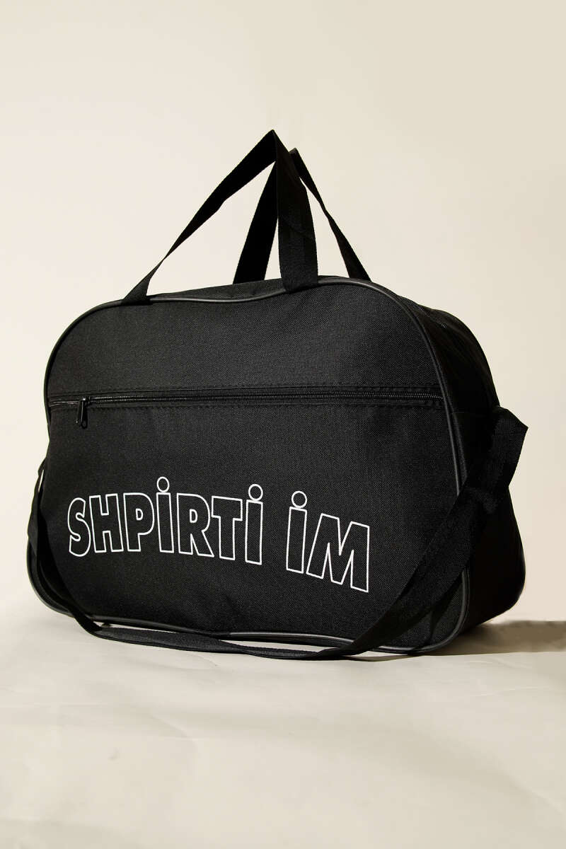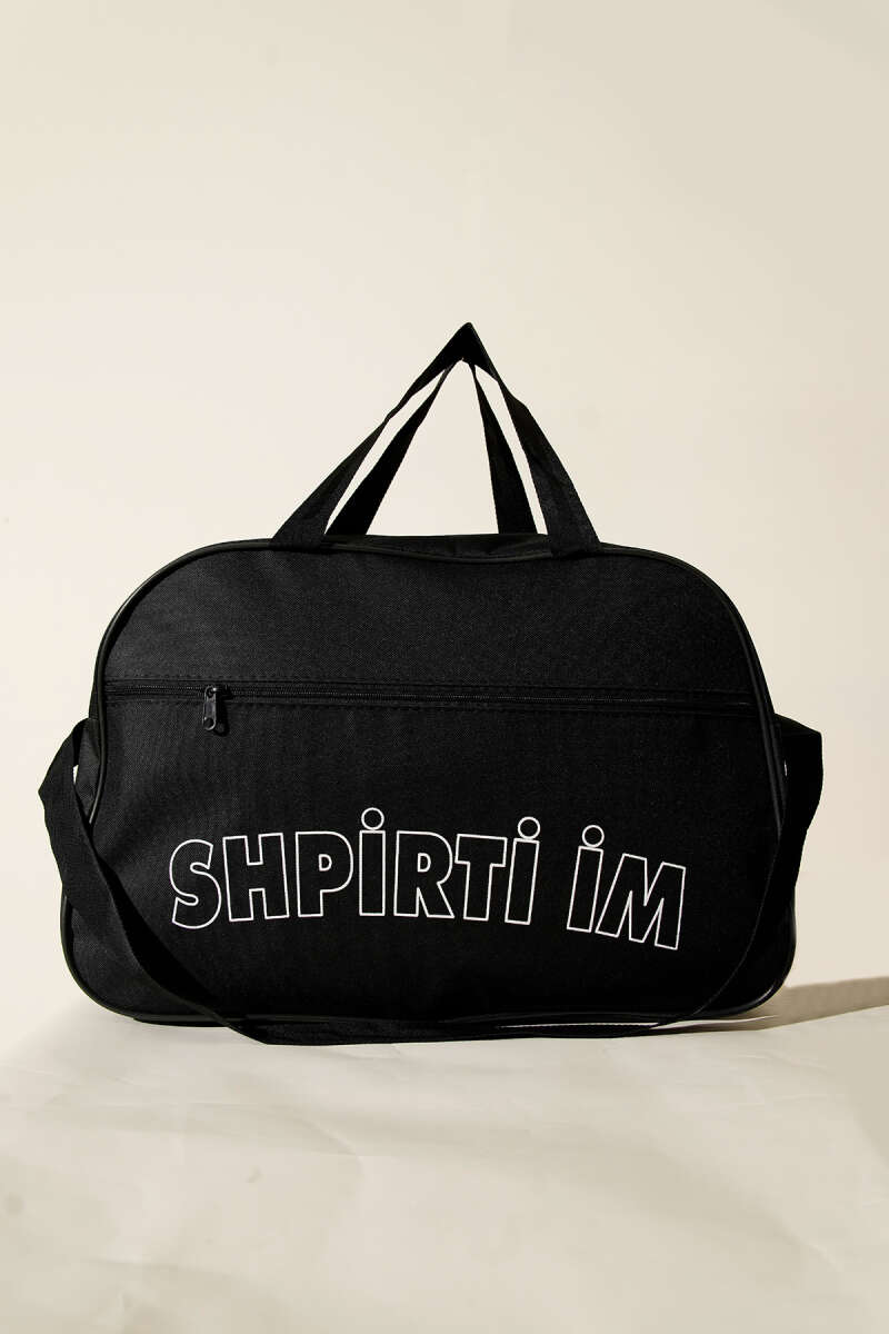 Shpirti İm Baskılı Fermuarlı Spor Çanta Siyah