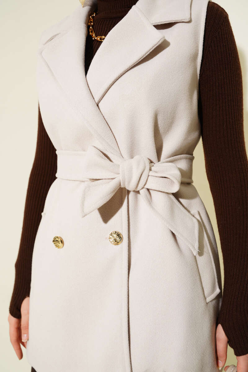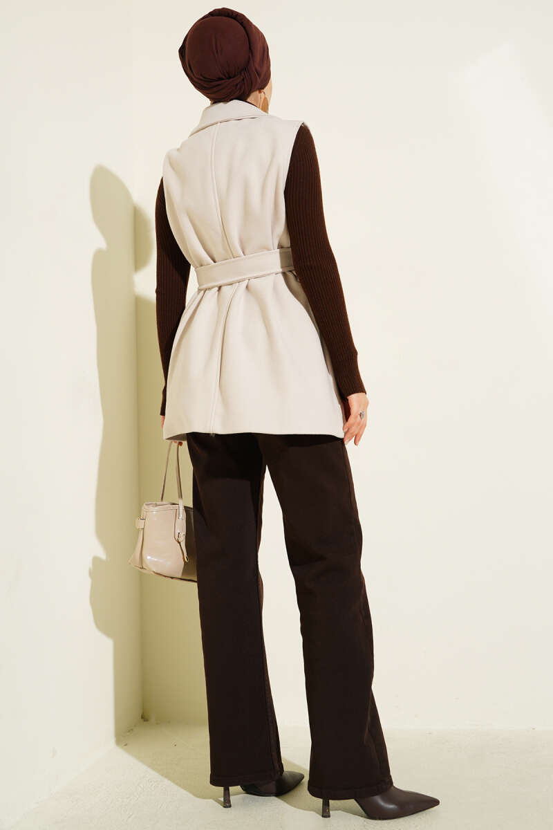 Sıfır Kol Kuşaklı Kaşe Yelek Taş