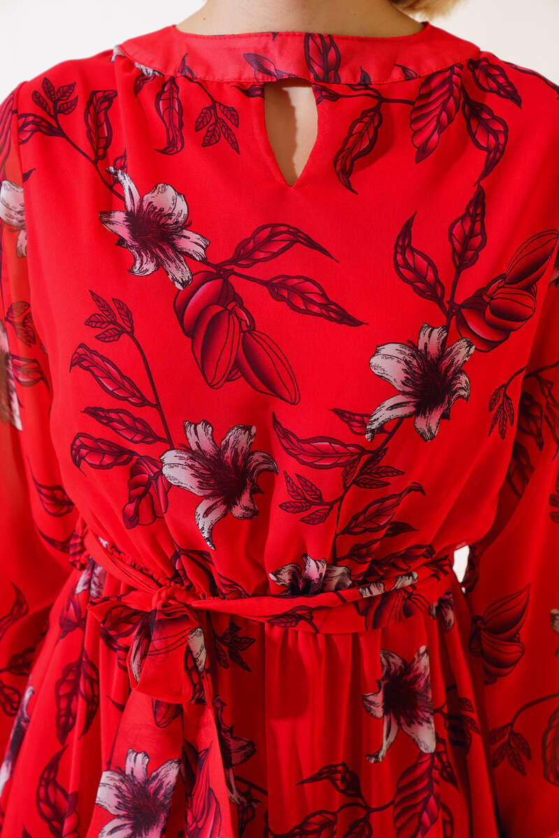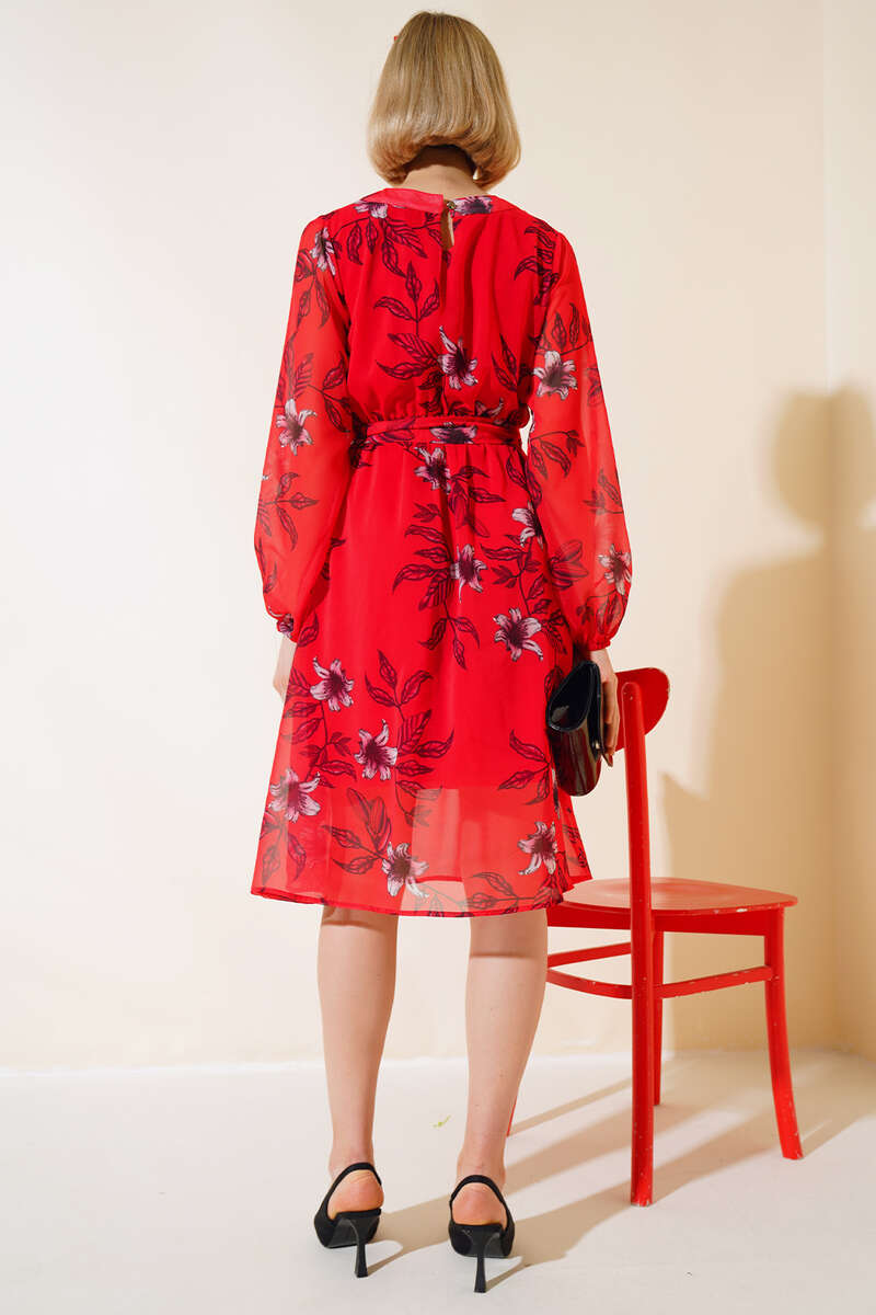 Sezonun en sevilen elbise modelimiz sizlerle beraber. Çiçek desenli elbisemiz hareketlilik ve şıklık kazanmıştır. Beli lastiklidir. Belden kuşaklı olup iki adet kemer köprüsü bulunmaktadır. Şifon elbisemizin kol bilekleri lastiklidir. Yakasında küçük dekolte detayı bulunmaktadır. Elbisemizin içi astarlıdır. Renk seçenekleri mevcuttur.