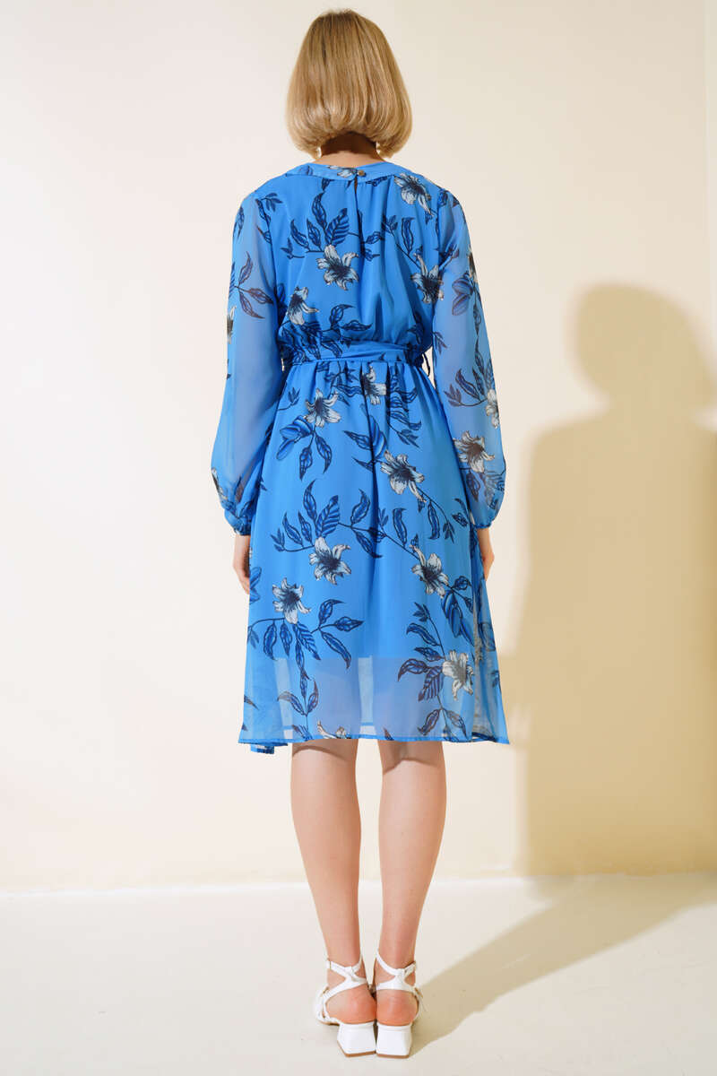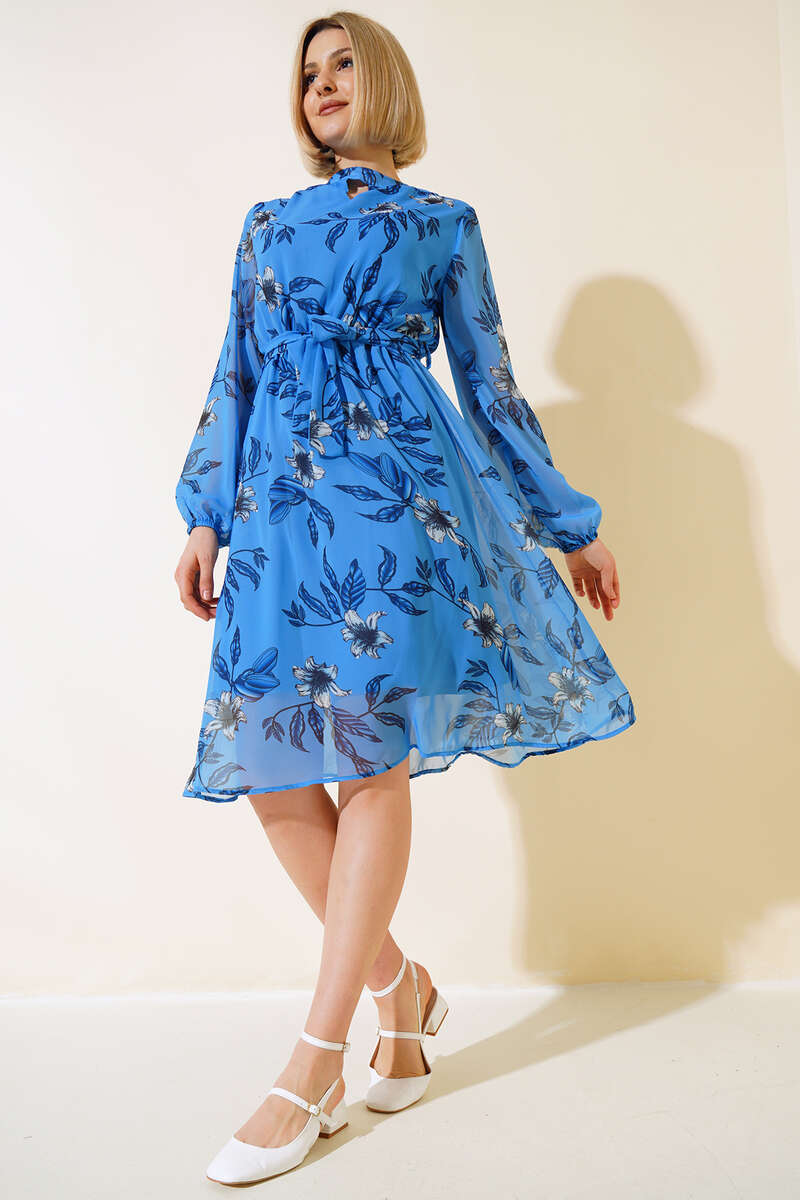 Sezonun en sevilen elbise modelimiz sizlerle beraber. Çiçek desenli elbisemiz hareketlilik ve şıklık kazanmıştır. Beli lastiklidir. Belden kuşaklı olup iki adet kemer köprüsü bulunmaktadır. Şifon elbisemizin kol bilekleri lastiklidir. Yakasında küçük dekolte detayı bulunmaktadır. Elbisemizin içi astarlıdır. Renk seçenekleri mevcuttur.