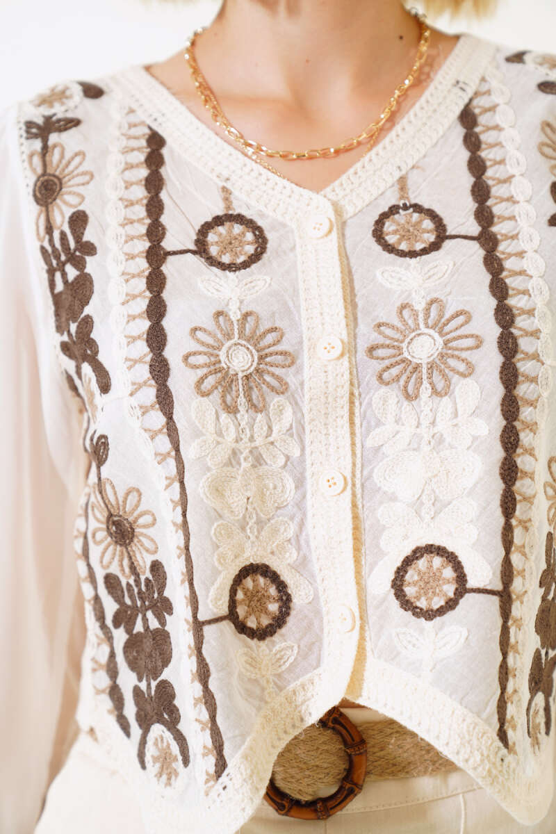 Gold Düğmeli Kemerli Sakallı Yelek Kahve