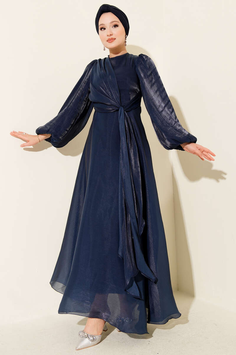 Şifon Yandan Bağlamalı Abiye Elbise Lacivert