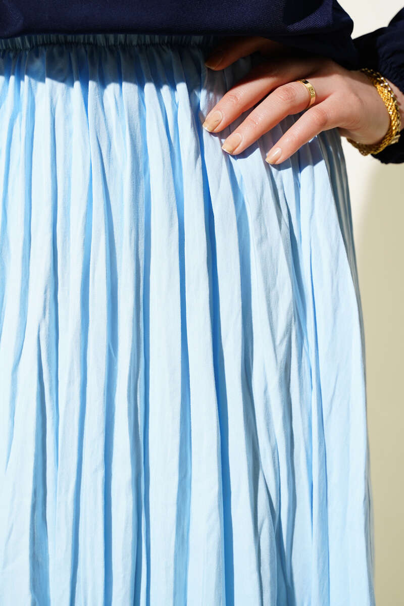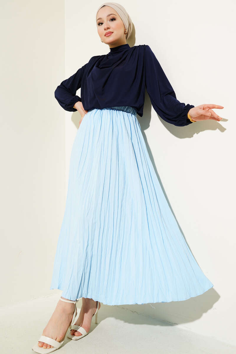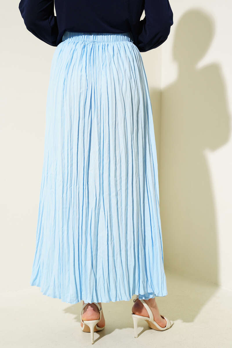 Sık Pileli Bel Lastikli Kırışık Etek Mavi