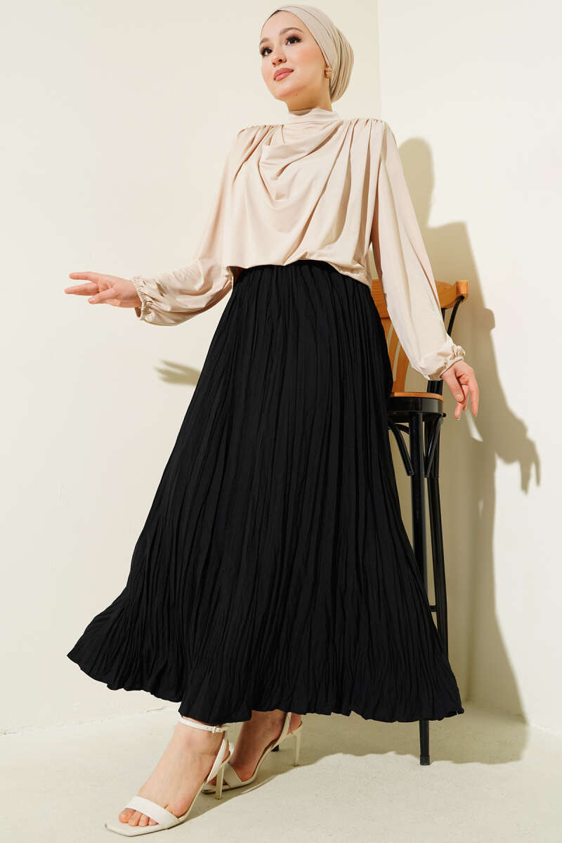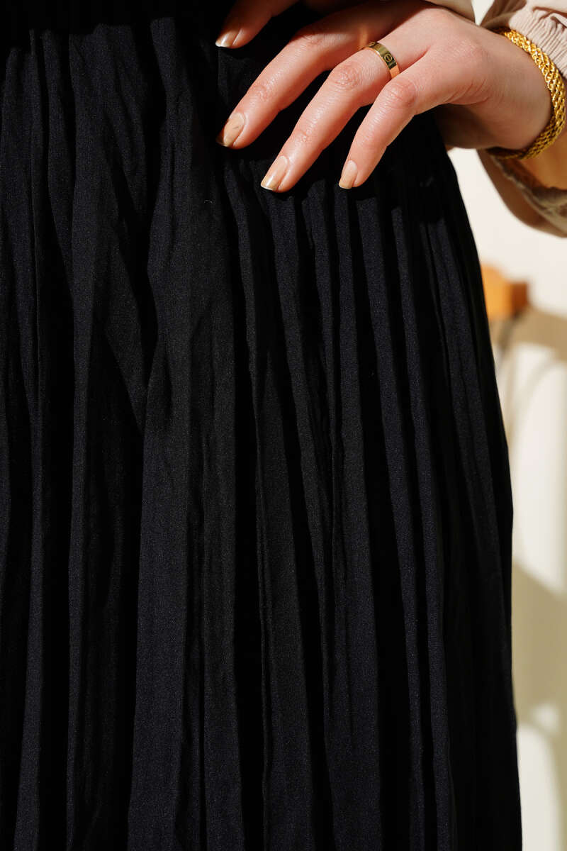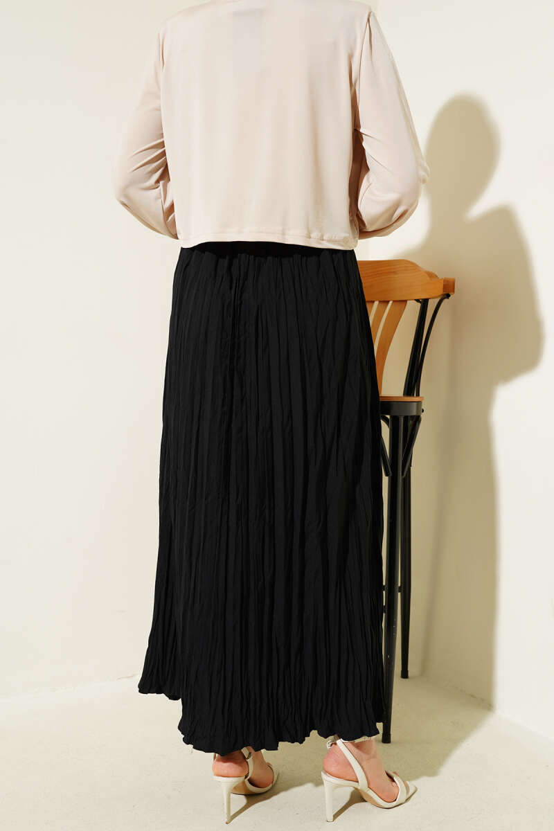 Kemerli Pile Detaylı Cepli Etek Siyah