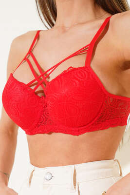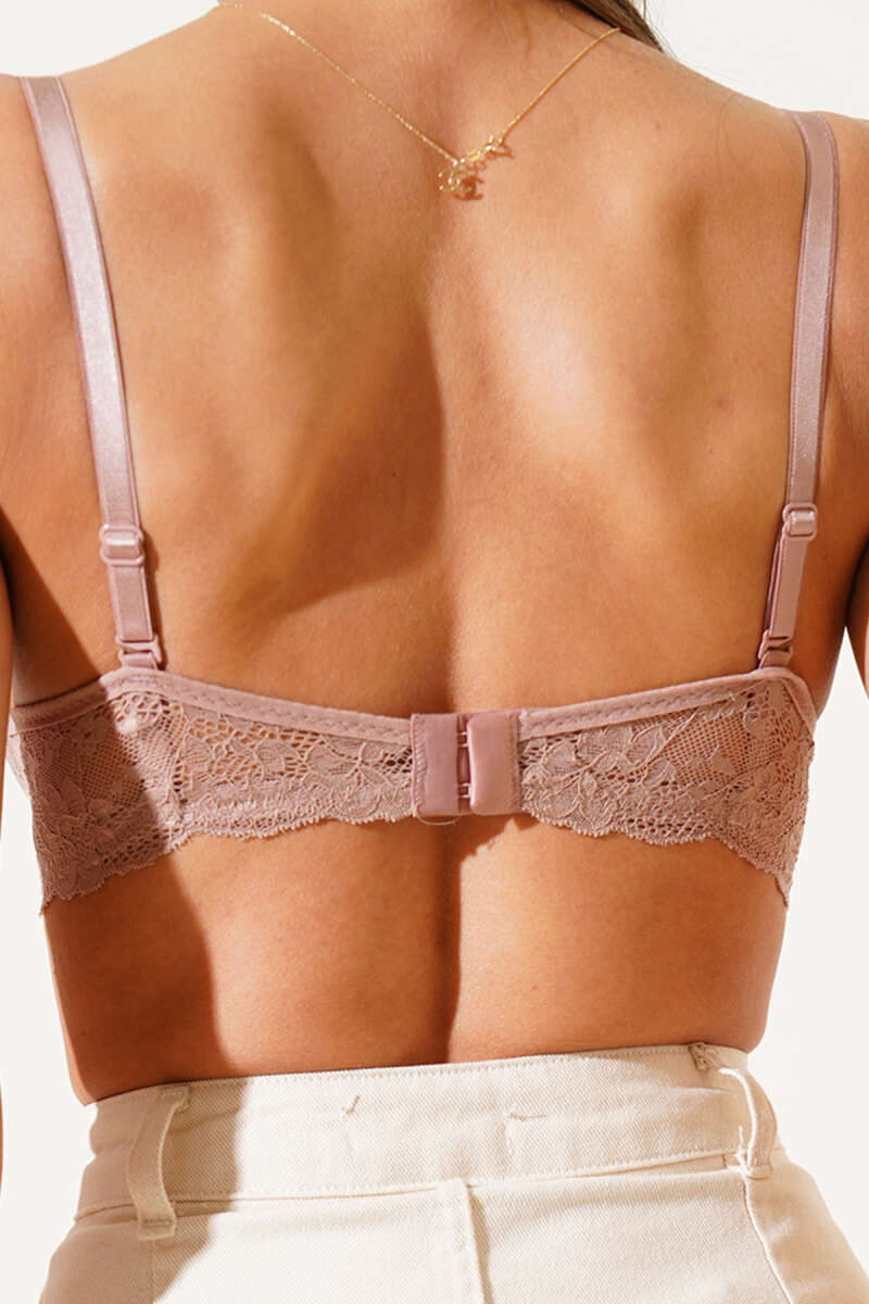 Silikonlu Destekli Dantelli Çapraz Sütyen Kahve