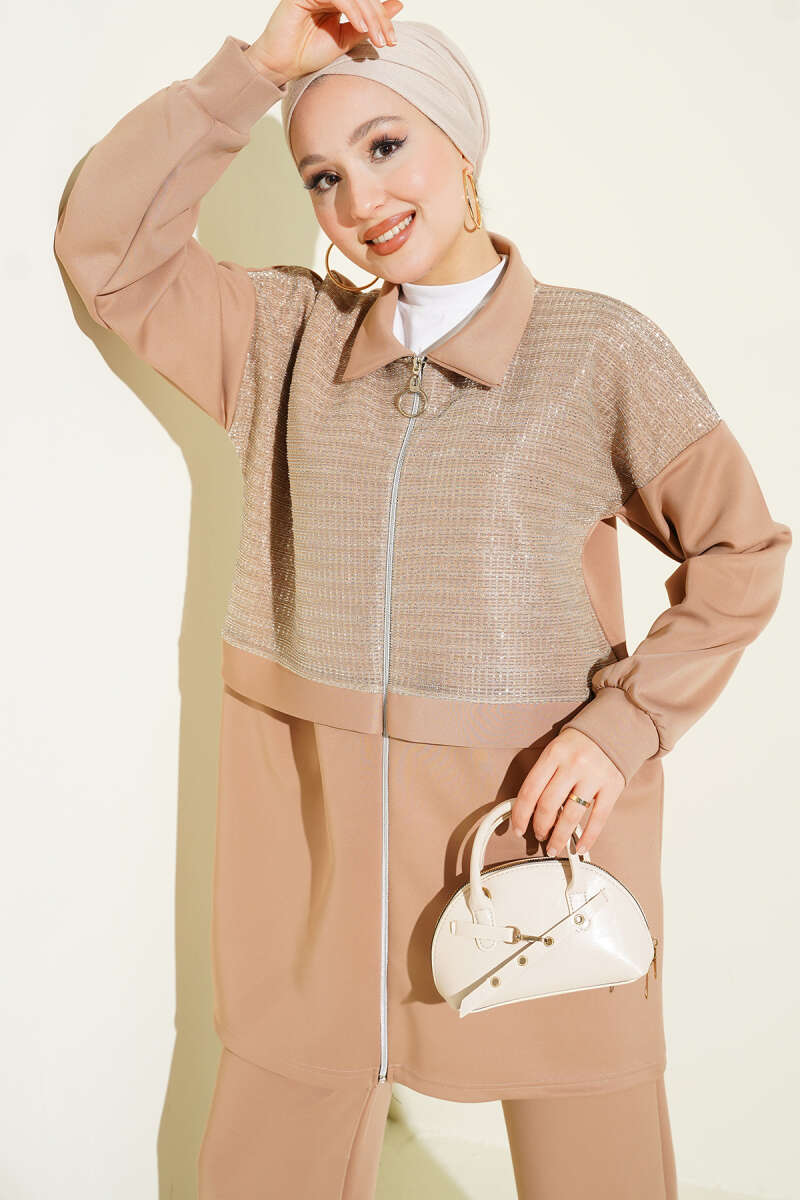 Önü Çımalı Basic İkili Takım Bej