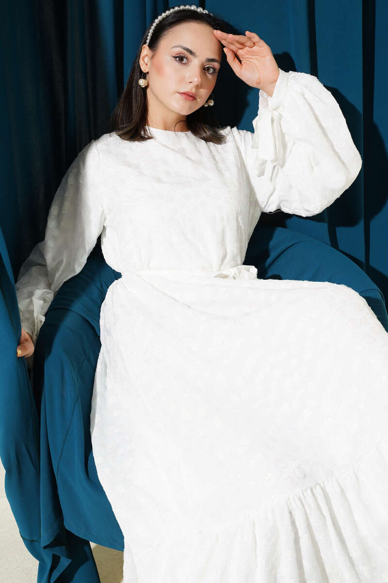 Duble Kol İp Bağcıklı Elbise Çağla Yeşili