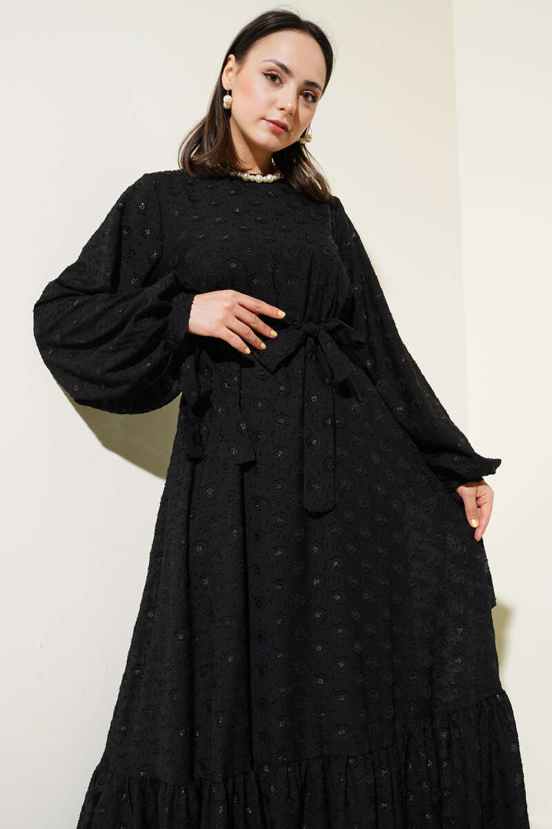 Gül Detaylı Pelerinli Abiye Elbise Siyah