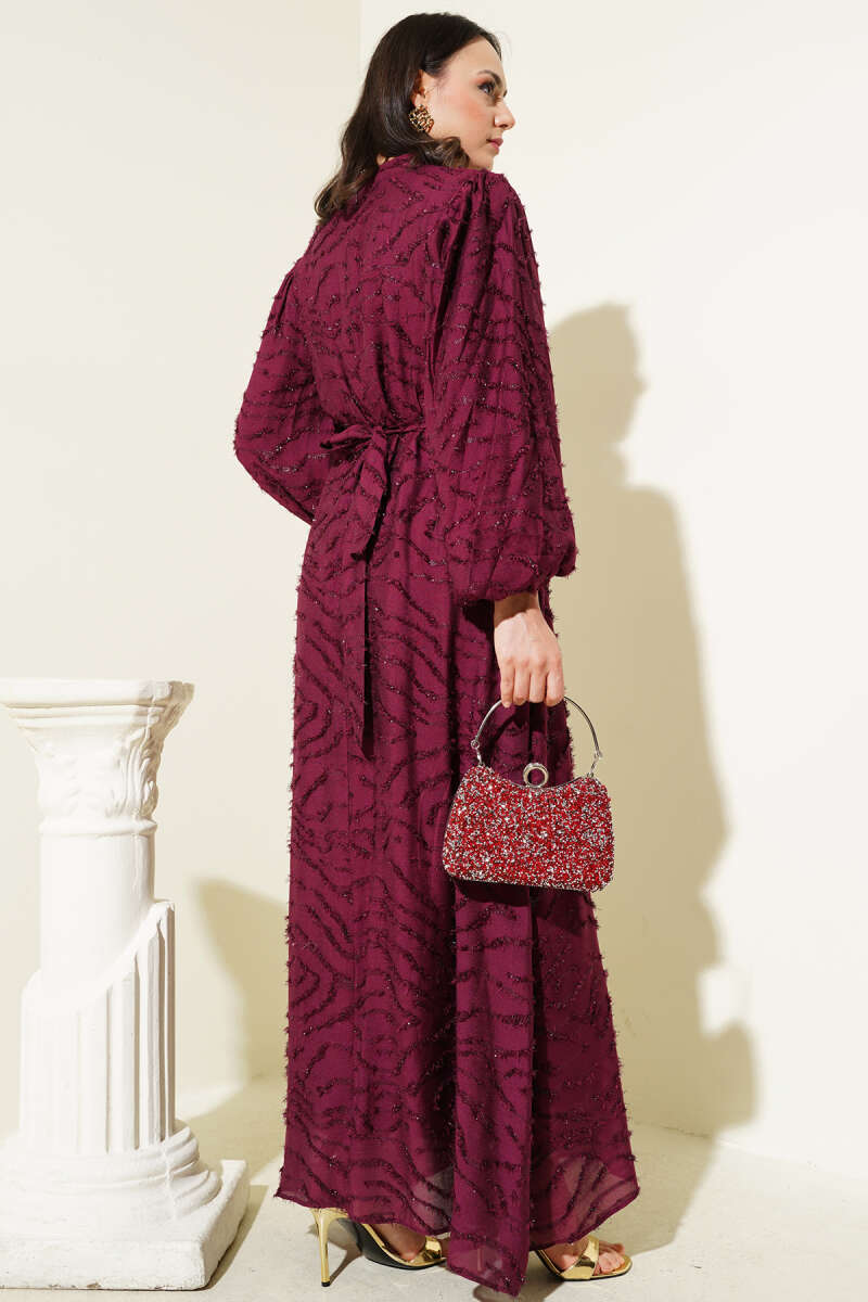 Bel Büzgü Detaylı Abiye Elbise Bordo
