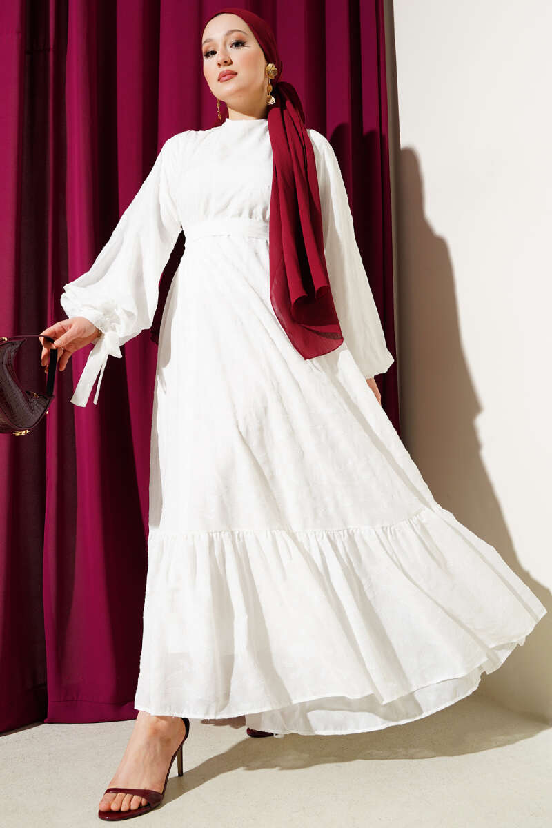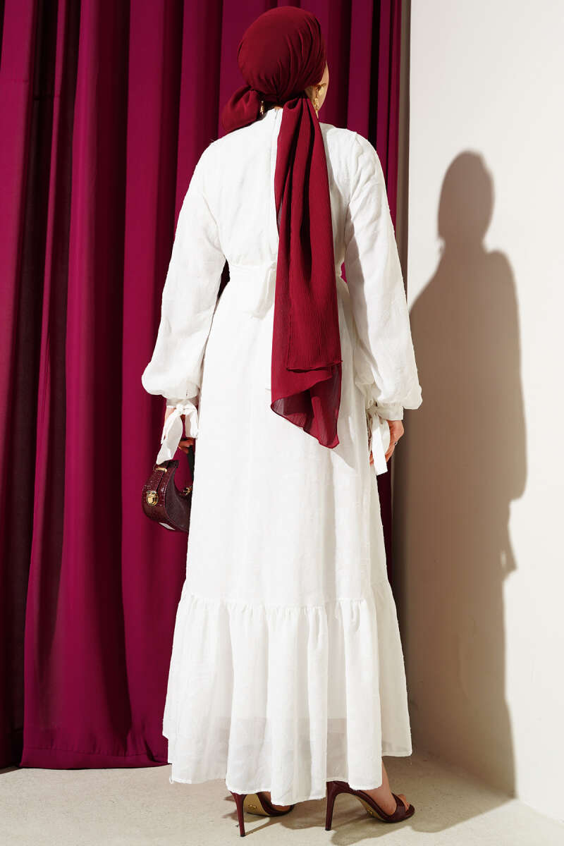 Kol Ucu Armalı İp Bağcıklı Elbise Latte