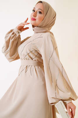 Yeni sezon elbisemiz sizlerle beraber. Elbisemizin önü ve kolları taşlarla süslenmiştir. Kol bilekleri manşetli ve düğmelidir. Elbisemizin ense kısmı düğmelidir. Kendi kumaşından kuşağı vardır. şık ve zarif olan elbisemiz dolabınızda yerini beklemektedir.