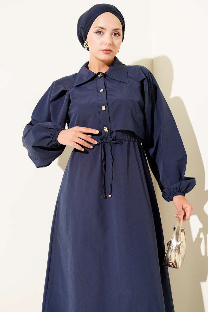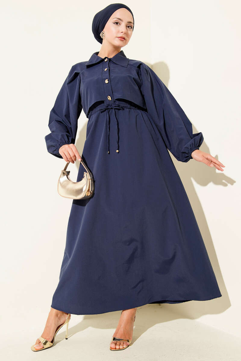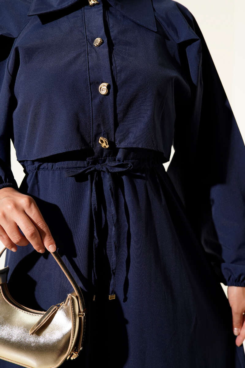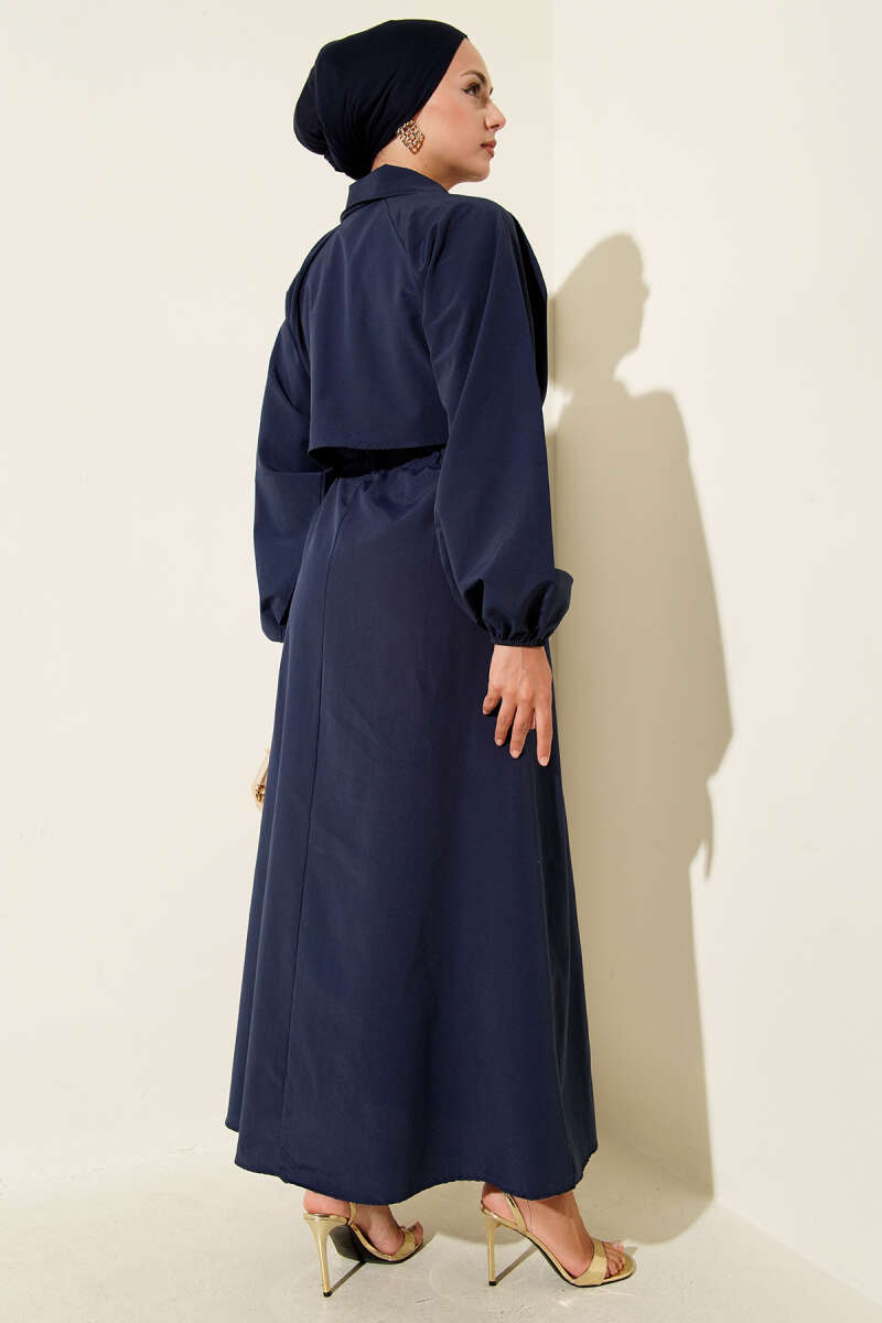 Gül Detaylı Pelerinli Abiye Elbise Lacivert