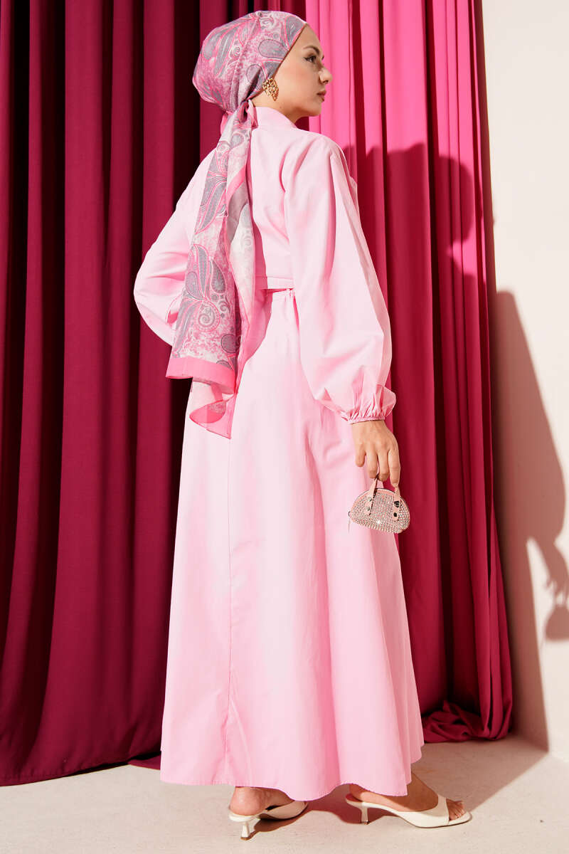 Bisiklet Yaka Uzun Kol Desenli Pijama Takımı Şeker Pembe