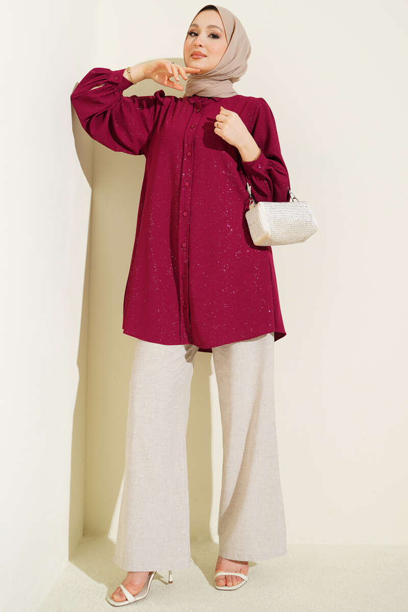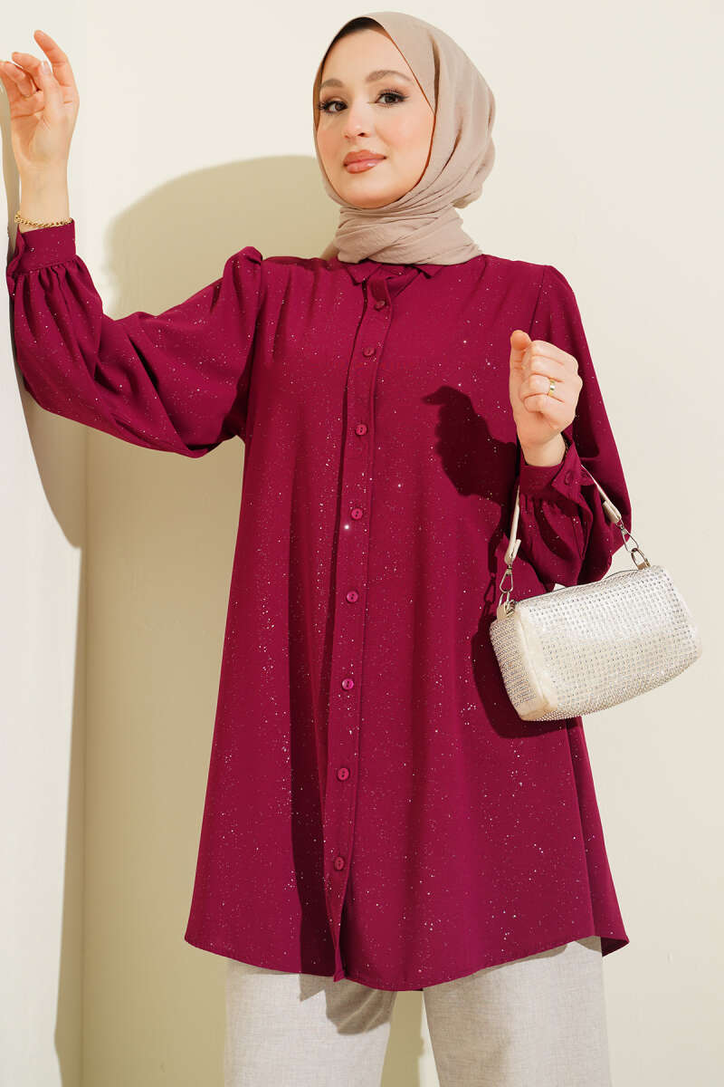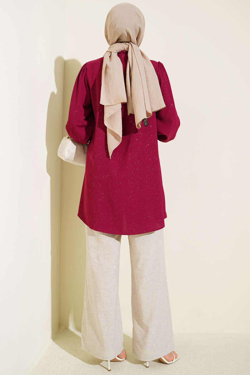 Simli Balon Kol Gömlek Bordo