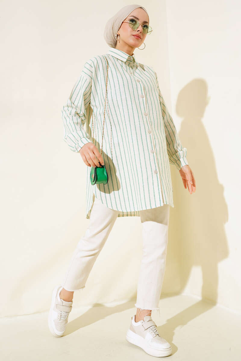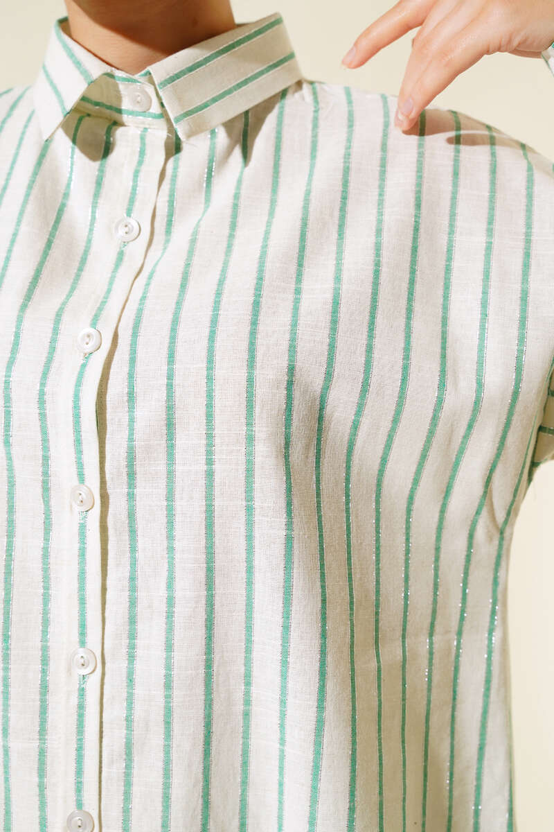 Yeni sezon gömlek modelimiz sizlerle beraber. Önü boydan düğmelidir. Gömleğimiz simli detaylarıyla ayrı bir hava katmıştır. Oversıze modeldir. Kol bilekleri manşetli ve düğmelidir. Dolabınıza ayrı bir hava katacaktır.