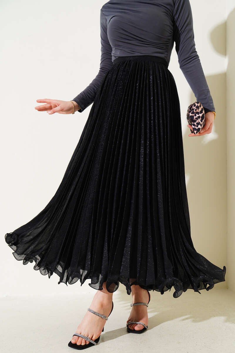 İp Bağlamalı Kloş Scuba Etek Siyah