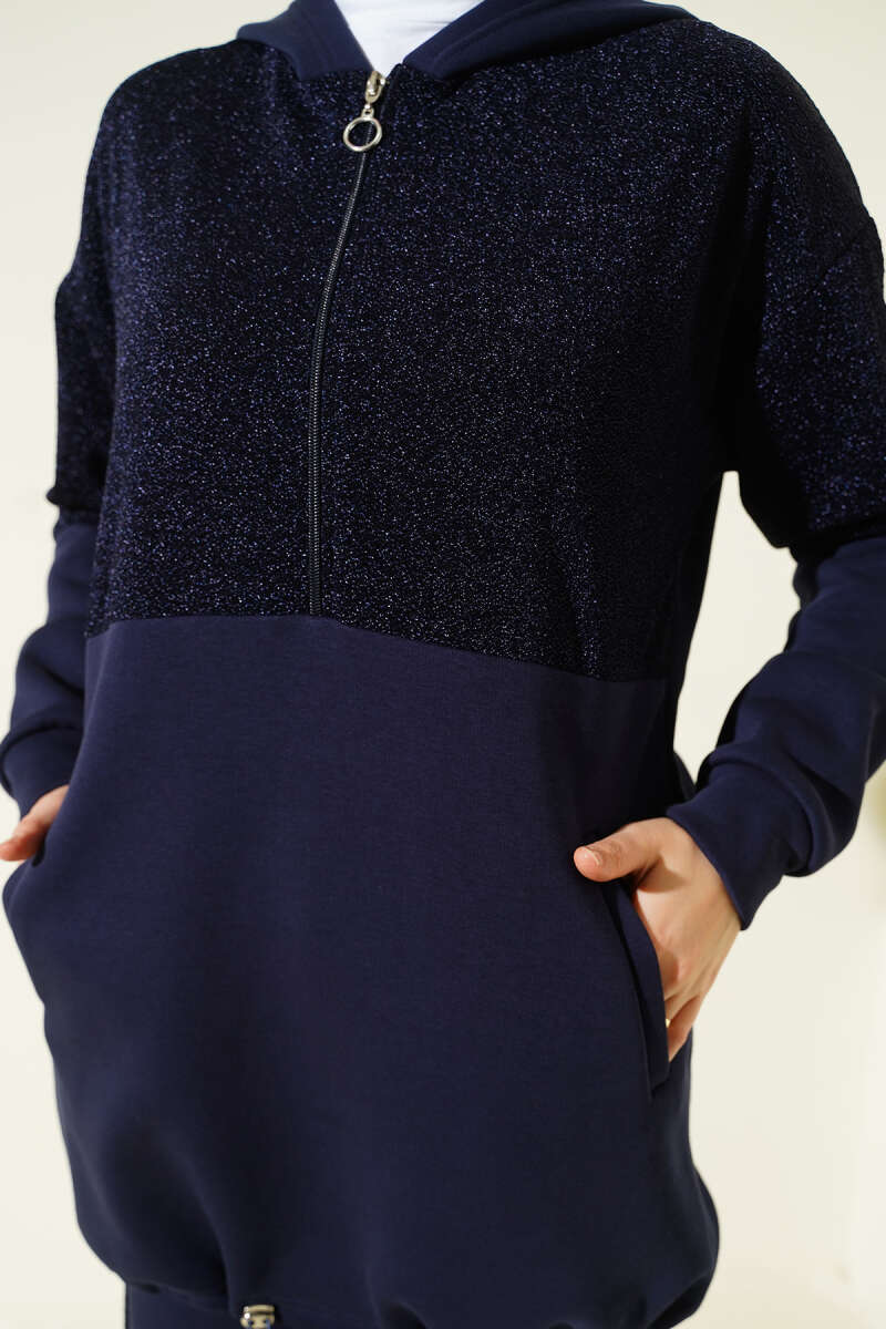 Düğmeli Sahte Cepli Scuba Etekli İkili Takım Lacivert
