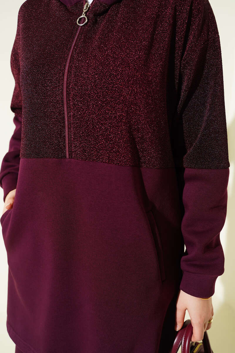 Düğmeli Sahte Cepli Scuba Etekli İkili Takım Bordo