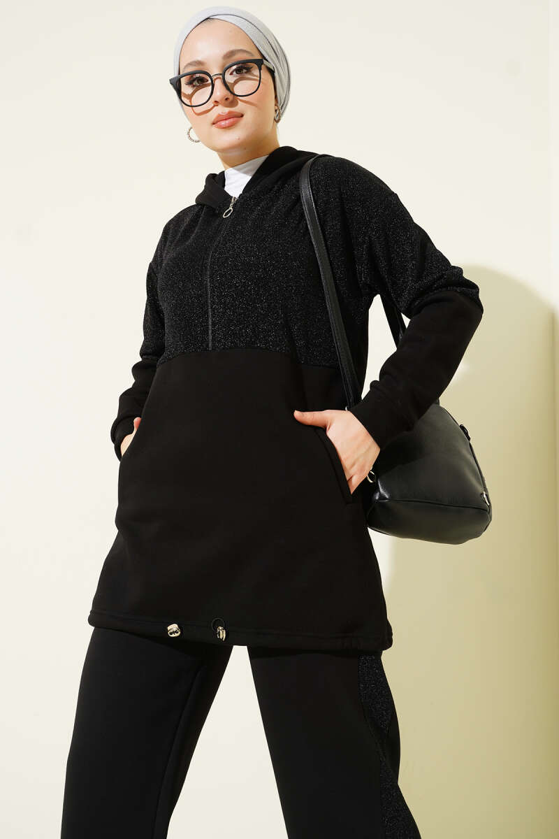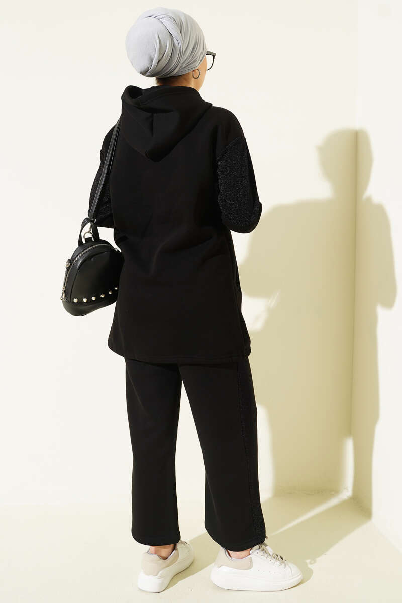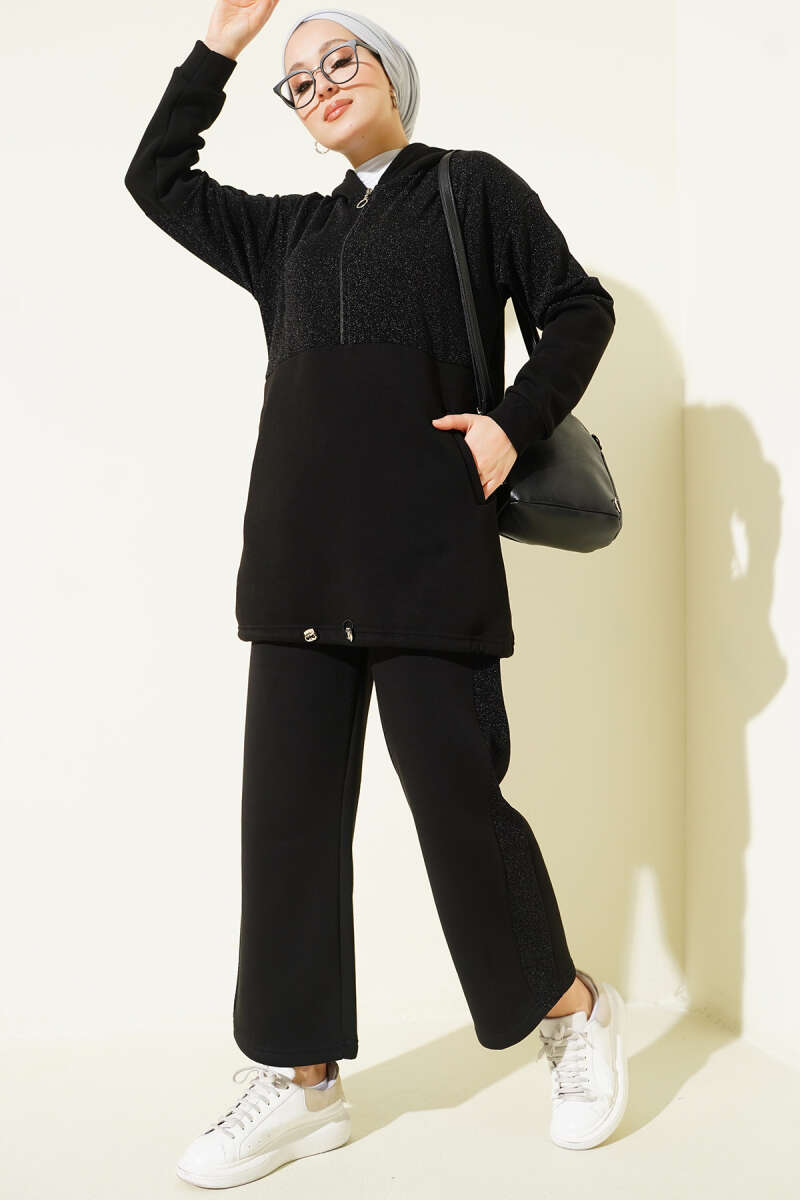 Düğmeli Sahte Cepli Scuba Etekli İkili Takım Siyah