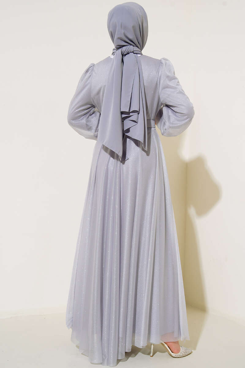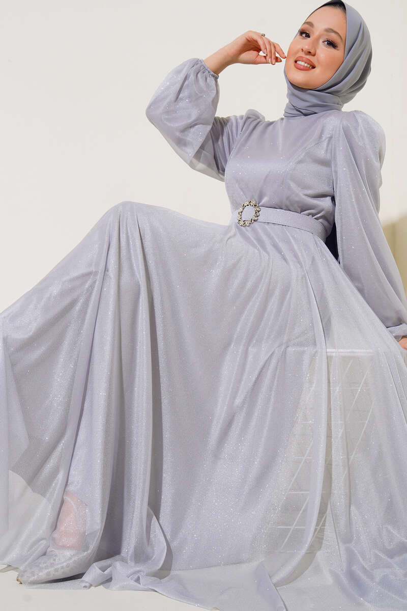Yeni sezon model abiye elbisemiz özel gecelerinizde parlamanıza olanak sağlayacaktır. Şık tasarımına eşlik eden simleri elbisemizi canlandırmıştır. Sırt fermuarlı elbisemiz kemerlidir. Bilekleri lastikli olan elbisemiz sezonun favorileri arasındadır.